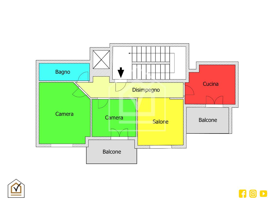 L'immobile, che si distribuisce perfettamente su una superficie interna di circa 80 mq, è situato al 2° piano di uno stabile in buone condizioni, questo dotato di comodo ascensore. L'appartamento proposto si compone di ingresso da cui si dislocano tutti gli ambienti, nonché l'arioso salone, la sua adiacente cucina abitabile che ha collegamento diretto col primo balcone, le due spaziose camere da letto di cui una con accesso unico al secondo balcone con affaccio sul cortile, ed il bagno padronale.