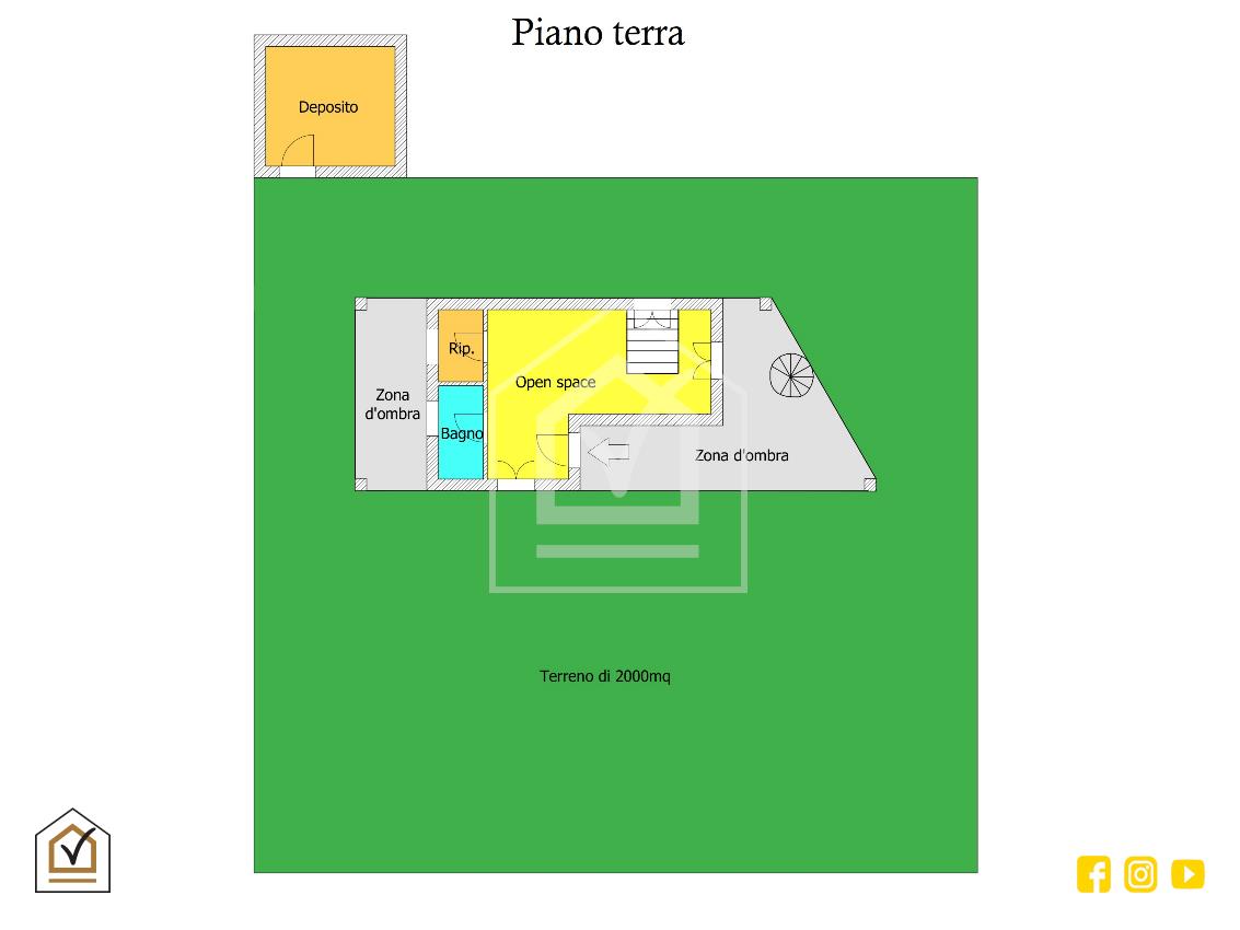 La soluzione, oltre ad essere provvista di una stanza deposito esterna e di uno spazioso spiazzale nel quale poter creare un'area giochi per bambini, comprende anche 2000 mq circa di terreno.