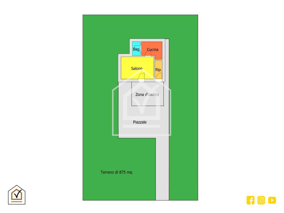 All'ingresso della proprietà siamo accolti da un vialetto che conduce al piazzale rivestito in pietra ed alla rifinita costruzione composta da: salone, cucina, bagno finestrato fornito di sanitari a pavimento e box doccia, e ripostiglio oltre che da una comoda zona d'ombra esterna, il tutto, già arredato.