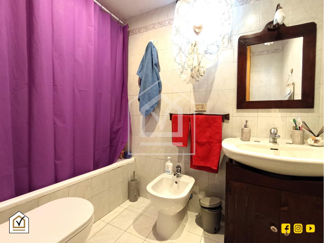 Internamente si compone di luminoso salone, disimpegno, cucina abitabile, camera matrimoniale e per concludere bagno padronale con vasca .