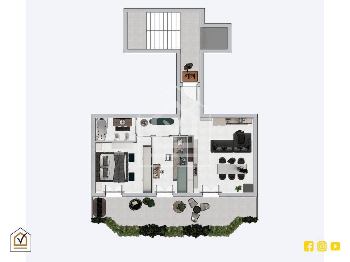 - Pavimentazione in grès porcellanato;