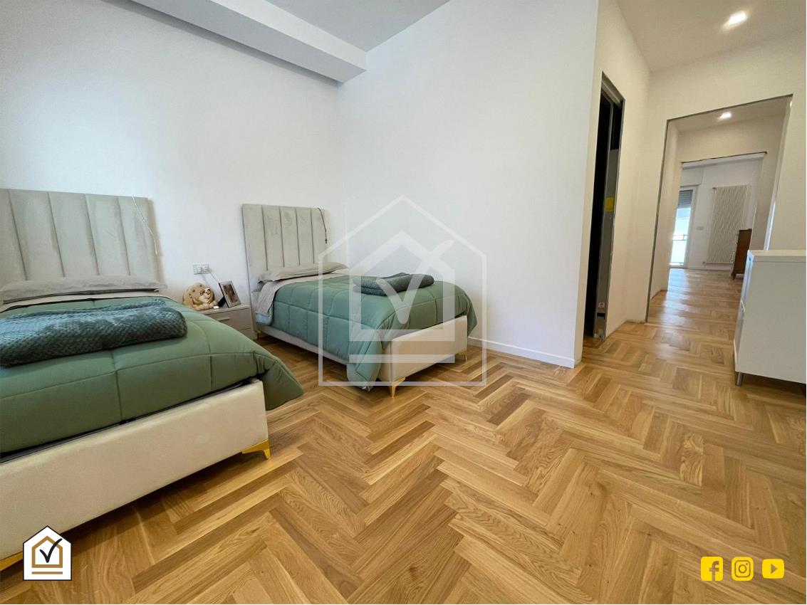 L’ingresso si apre su un ampia e luminosa zona living open space che racchiude: l'elegante salone con affaccio esterno su comodo balcone da attrezzare per godersi piacevoli momenti di relax, ed il soggiorno pranzo con la rispettiva esposizione su balcone interno verandato, che ospita l'angolo cottura e l'utilissima zona lavanderia. La zona notte invece è studiata per offrire comfort e privacy, con la spaziosa camere matrimoniale finestrata e completa di cabina armadio ed la seconda camera da letto anch'essa dotata di cabina armadio e di un bagno privato, arricchito di tutti i comfort necessari tra cui il piatto doccia.