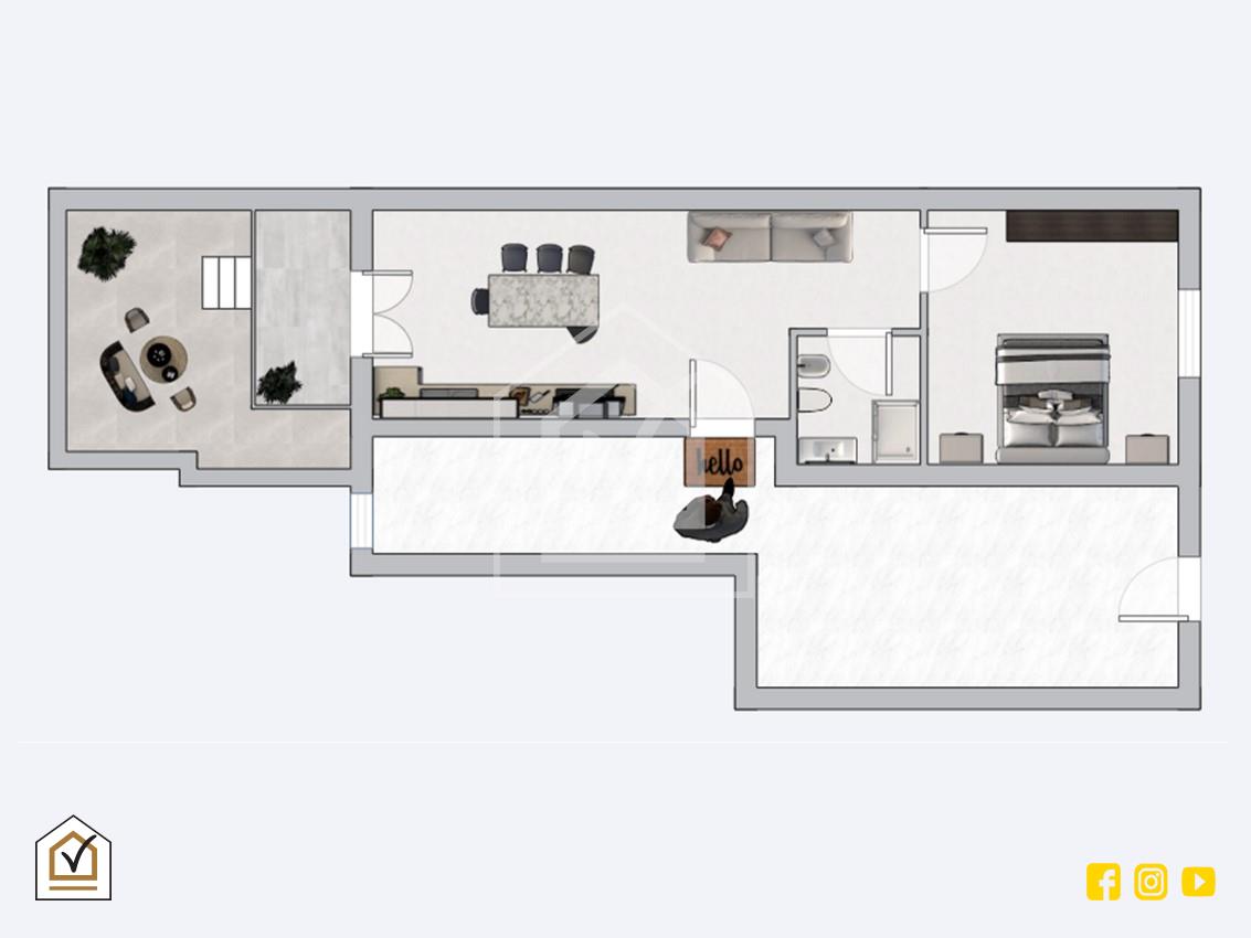 La solzuione ricopre una superficie di 55 mq ca. ed è attualmente locata con regolare contratto di locazione fino al 28 febbraio 2026 con buona rendita mensile.