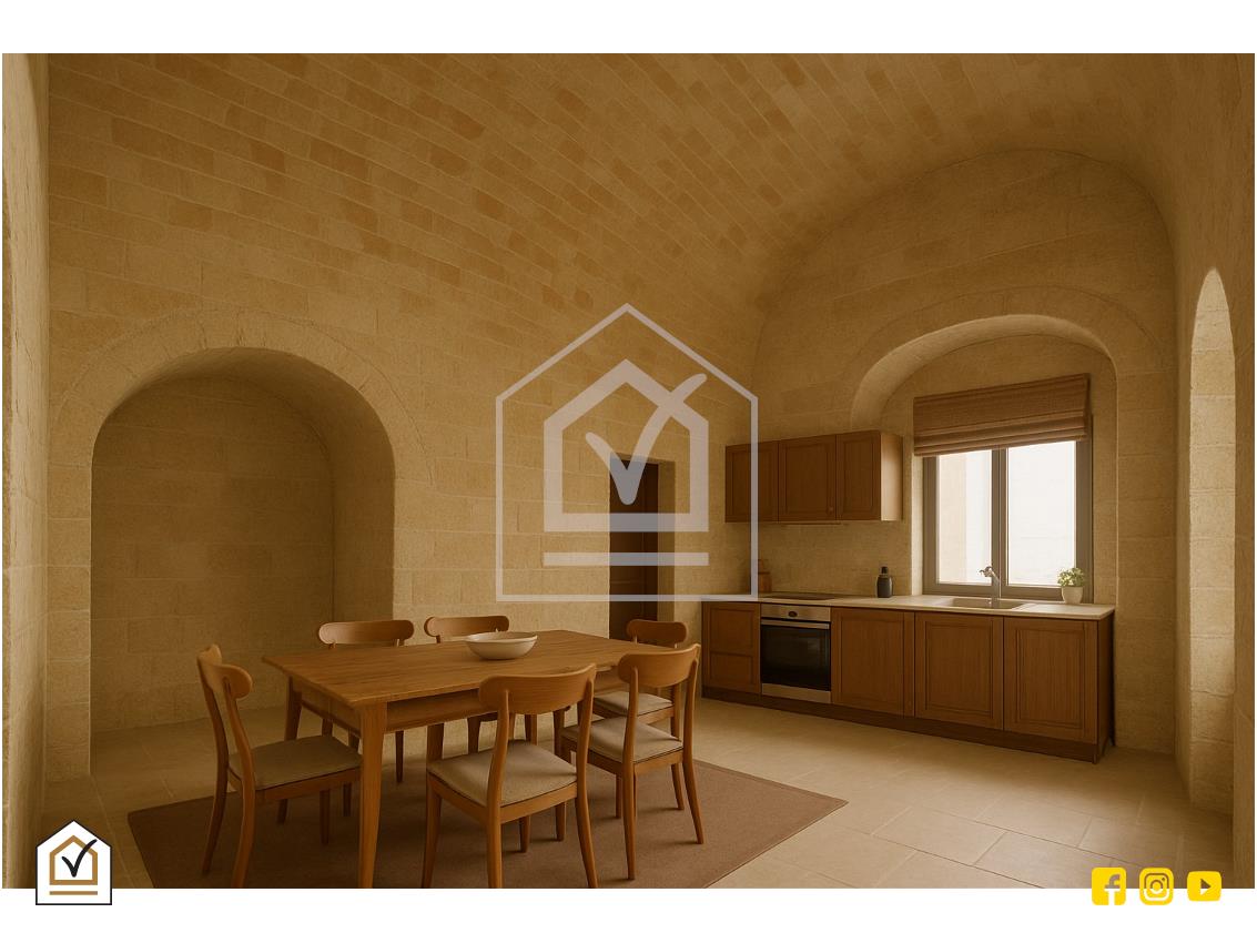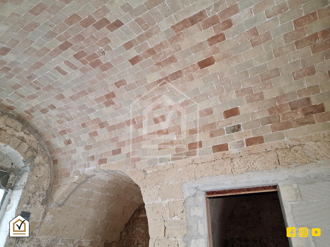 Ad accoglierci al primo piano, un’ampia e luminosa zona living composta da una cucina abitabile e un elegante salone doppio, servito da un bagno principale. A rendere unica questa parte della casa sono le suggestive volte a botte, con quella principale in pregiato cotto e le altre in tufo, autentiche testimonianze dell’architettura storica locale.