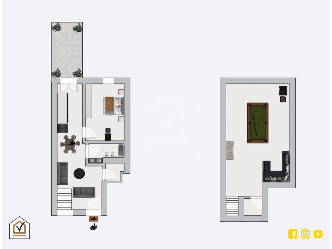Al piano interrato, è presente un’ampia tavernetta dalle rifiniture in pietra, perfetta per trascorrere piacevoli serate in compagnia o come spazio aggiuntivo da personalizzare. Il camino a legna, protagonista della stanza, aggiunge un tocco di calore e accoglienza all’ambiente.