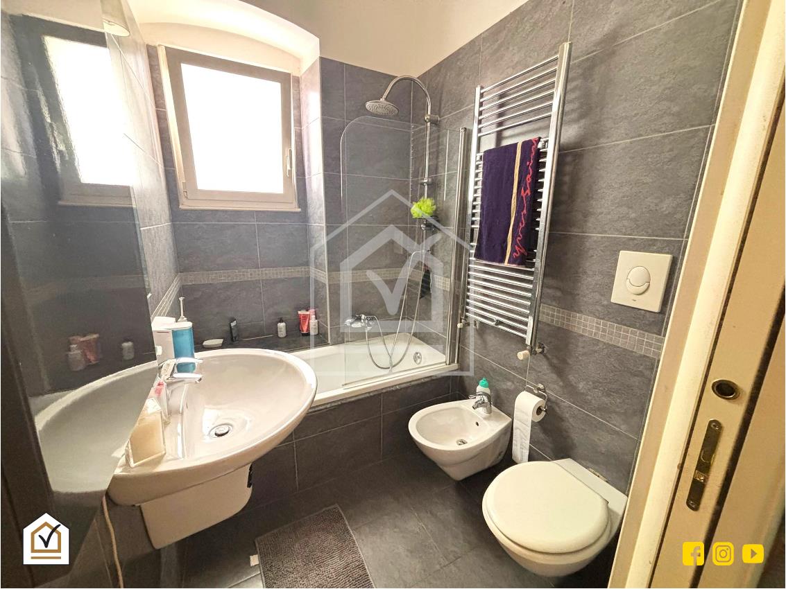 La zona notte comprende una camera matrimoniale silenziosa e ben proporzionata, ideale per garantire privacy e comfort. Sono presenti due bagni: il principale è dotato di una comoda vasca con doccia, sanitari sospesi e finiture moderne in gres porcellanato effetto pietra, mentre il secondo offre ulteriore funzionalità per la vita quotidiana o per gli ospiti.