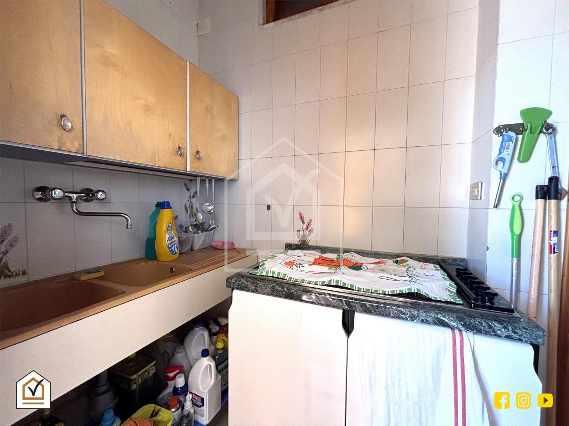 All’interno, l’abitazione si apre su un salone accogliente e luminoso, con affaccio diretto sull’esterno, affiancato da un angolo cottura funzionale e ben inserito nello spazio. Un bagno finestrato serve comodamente la zona giorno.