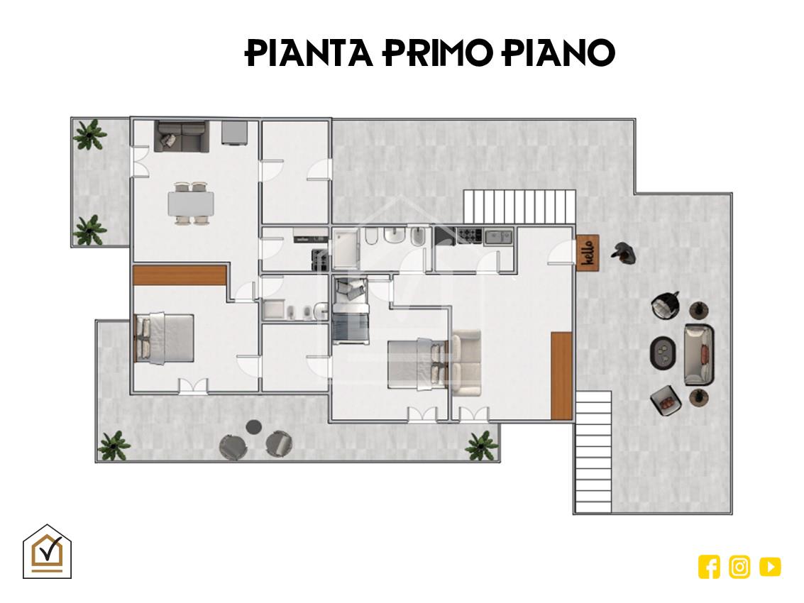 L’ingresso alla proprietà avviene da una scala indipendente che conduce al primo piano, dove si apre un ampio terrazzo esclusivo, perfetto per momenti di relax all’aperto o convivialità. Il terrazzo, già attrezzato con barbecue, è uno spazio ideale per cene con vista e giornate all’aria aperta.