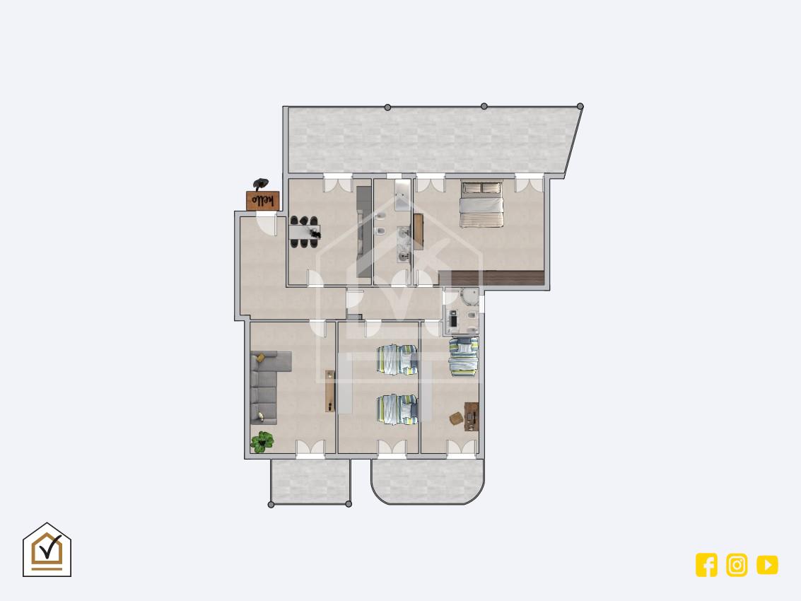 Attualmente riversa in ottimo stato ed è composto all'ingresso dalla zona giorno con accesso diretto all'ampio balcone; dal disimpegno si giunge alla zona notte composta da 3 camere da letto e dal doppio servizio.