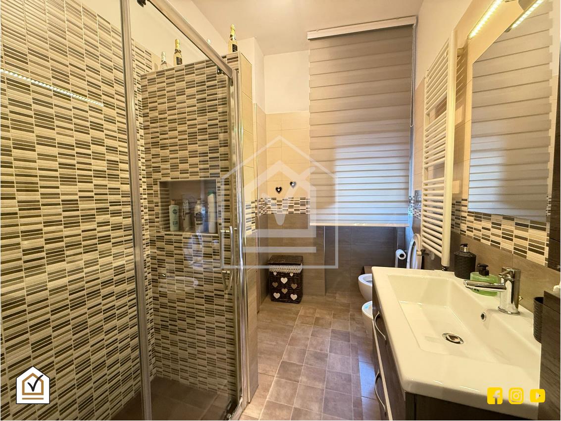 La zona notte si compone di tre camere da letto ben proporzionate, adatte a soddisfare le esigenze di una famiglia numerosa o di chi desidera ambienti da adibire a studio o stanza ospiti. Il bagno, anch’esso completamente ristrutturato, si distingue per l’attenzione ai dettagli e per l’utilizzo di materiali di pregio, garantendo comfort e funzionalità.