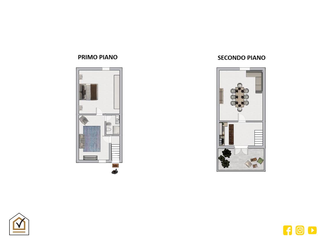 Al secondo piano troviamo un cucinino e una sala da pranzo con accesso diretto a un terrazzo a livello, ideale per trascorrere momenti di relax o organizzare pranzi e cene all'aperto.