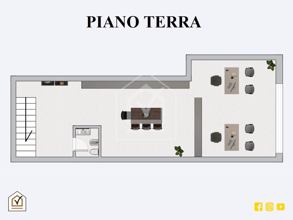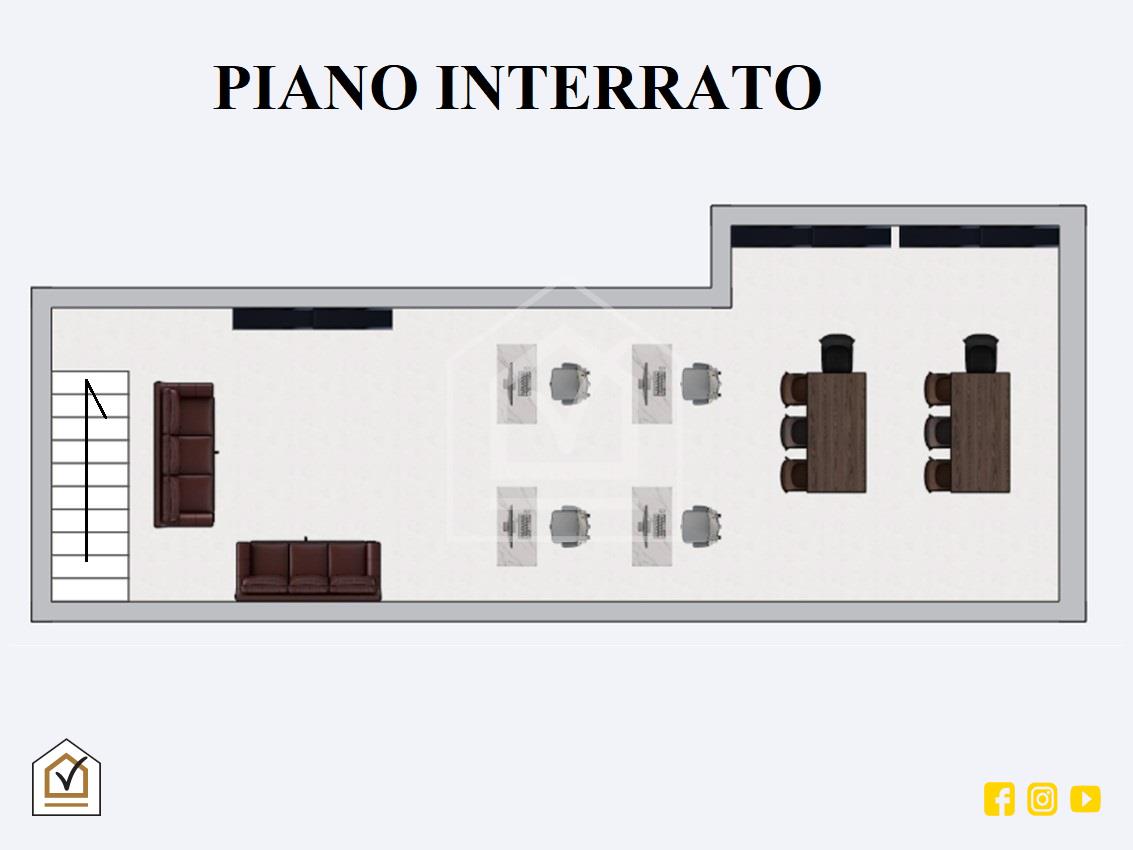 Al piano terra, troviamo uno spazio accogliente e luminoso, grazie alla vetrina su strada che offre un’ottima visibilità e garantisce un costante passaggio pedonale.