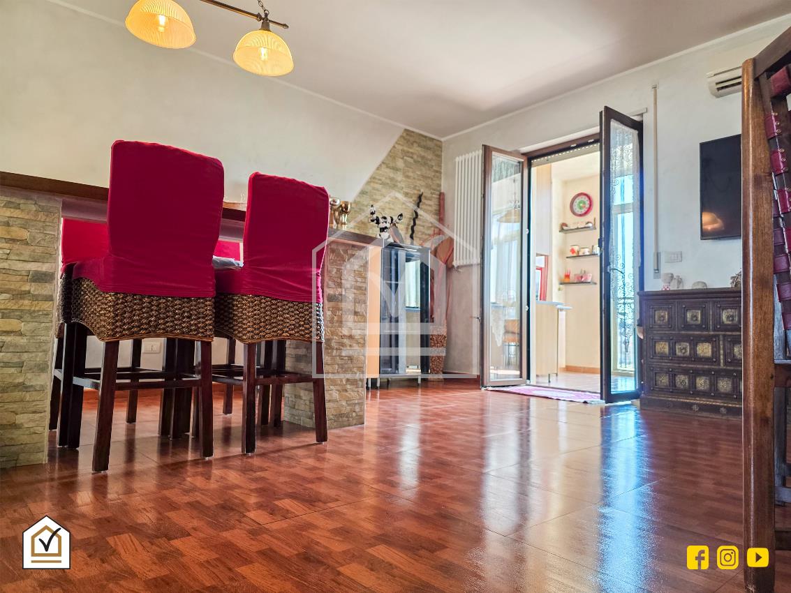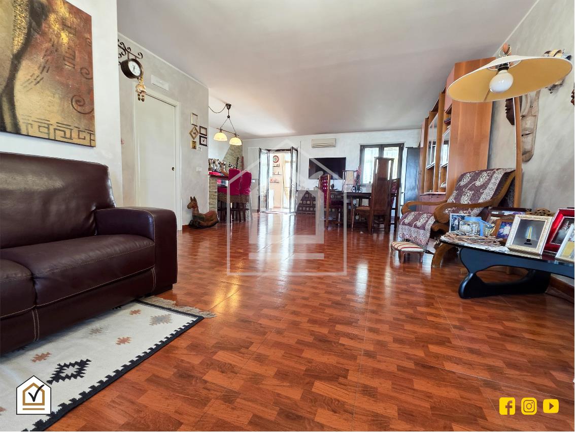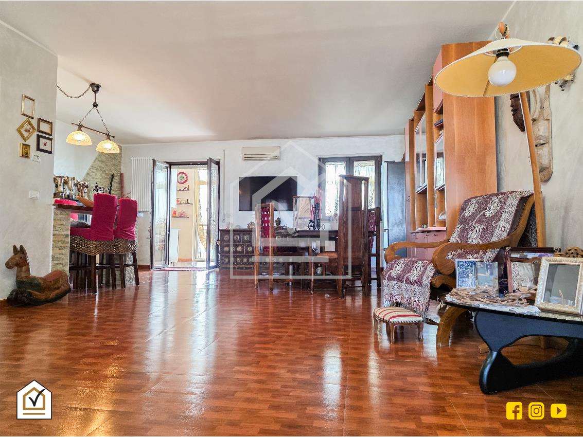 Varcando la porta d'ingresso blindata si accede all'ampia zona giorno di circa 60 mq, cuore pulsante della casa: uno spazio luminoso e accogliente, perfetto per momenti di relax o per ricevere degli ospiti.