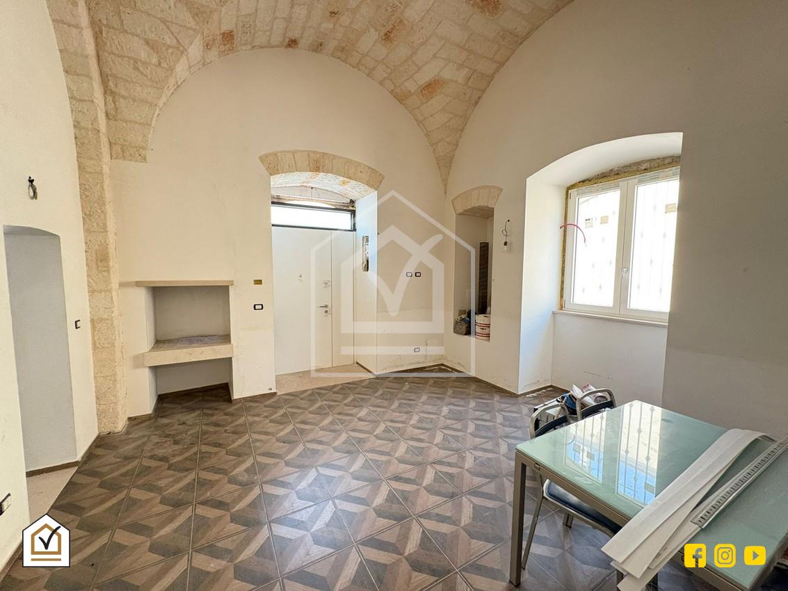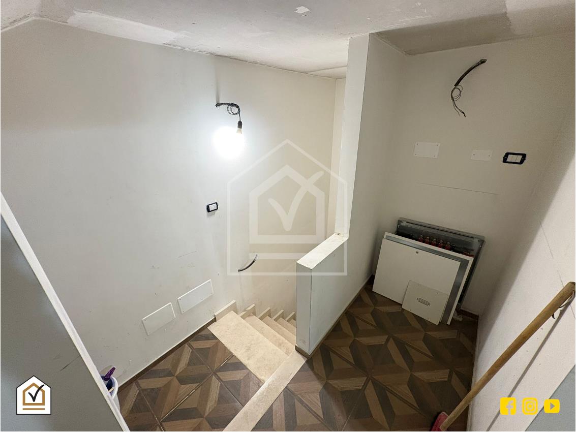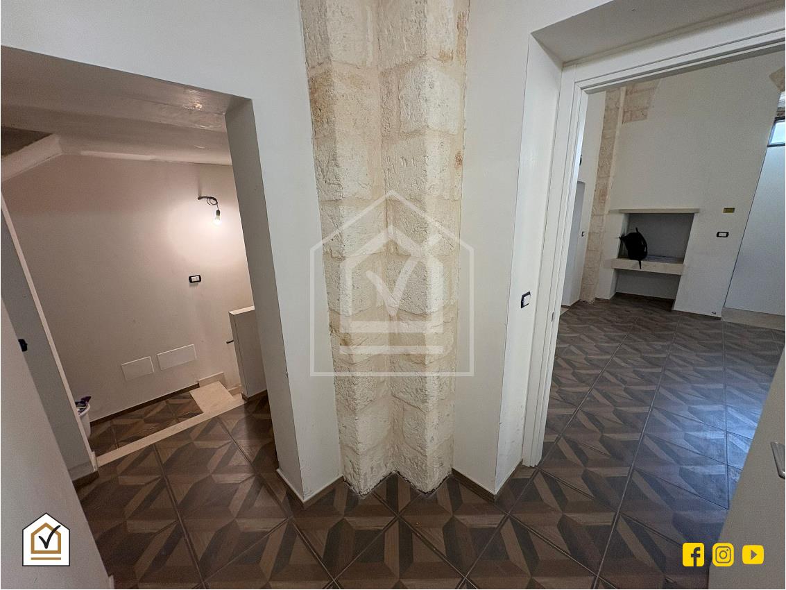 L’abitazione, situata al piano terra, accoglie sin dal primo ingresso grazie ad un ampio open space che unisce con armonia la zona living. L’ambiente è valorizzato dai soffitti alti che donano ariosità e dalla presenza suggestiva della pietra viva a vista, elemento distintivo che esalta il fascino autentico della casa. La pavimentazione in gres porcellanato effetto legno regala calore e continuità agli spazi, conferendo un carattere moderno ed elegante allo stesso tempo.