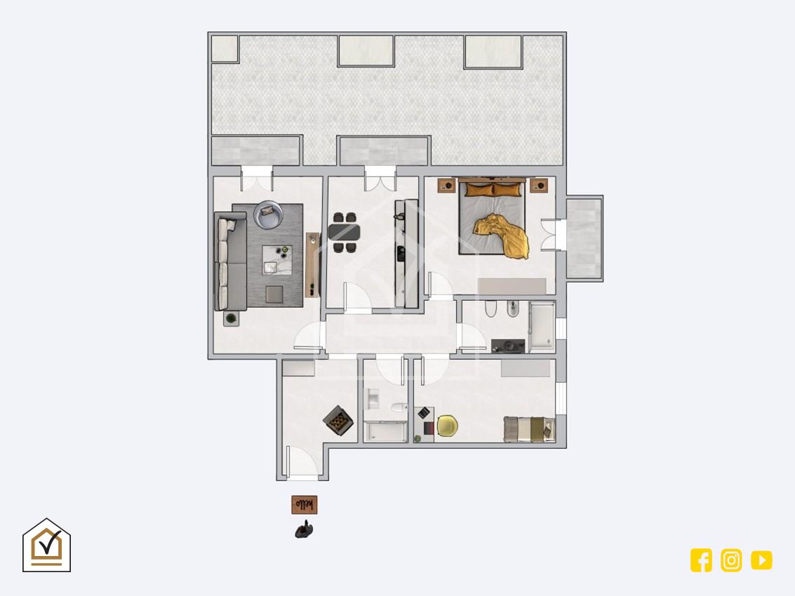 I circa 100 mq interni permettono la realizzazione di qualunque tipo di progetto abitativo, rendendo questa soluzione ideale sia per chi desidera una prima casa funzionale e accogliente, sia per chi cerca un investimento in una delle zone più centrali e ambite della città.