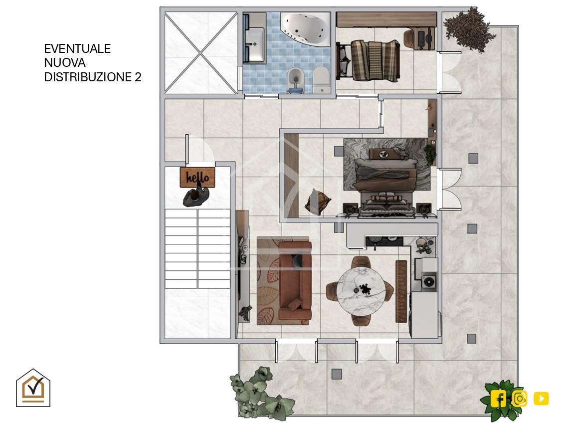 Gli interni, moderni e funzionali, sono stati concepiti per adattarsi a diverse esigenze abitative: l’immobile offre infatti la possibilità di scegliere tra due differenti soluzioni di planimetria, entrambe studiate per massimizzare gli spazi e il comfort quotidiano. È possibile ricavare fino a due camere da letto, una zona giorno con cucina e un bagno di generose dimensioni, garantendo così versatilità e personalizzazione in base alle necessità del futuro acquirente.