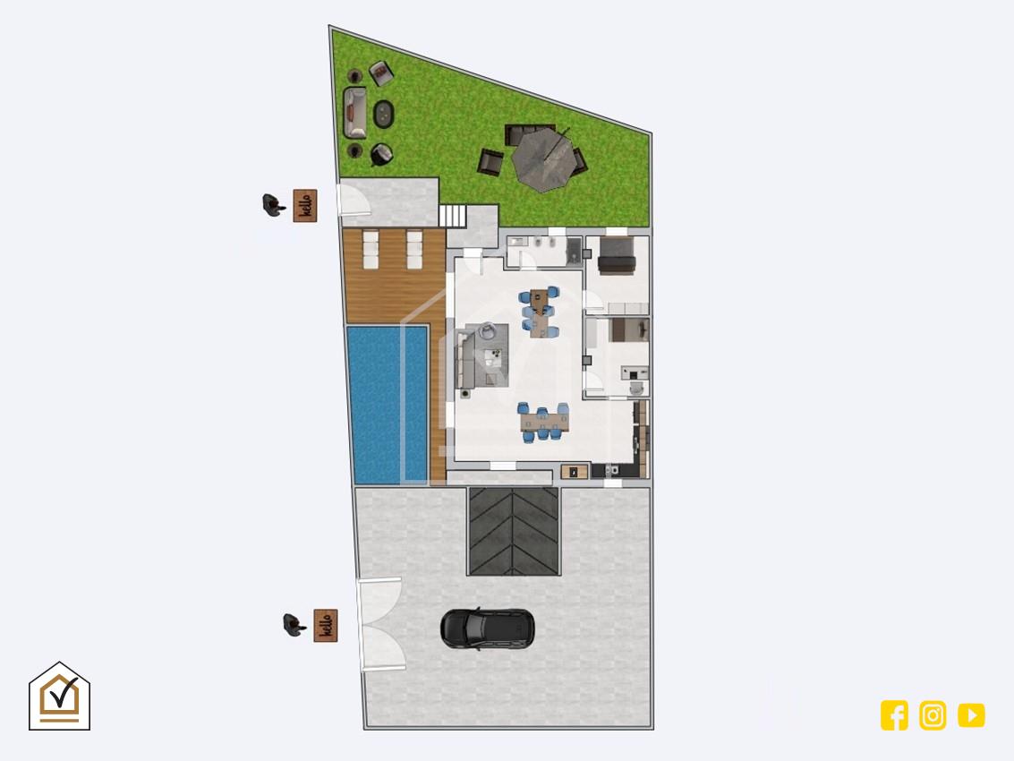 Questa proprietà esclusiva è stata progettata per essere abitabile da subito, grazie a finiture di alto livello e a una distribuzione degli spazi pensata per garantire funzionalità e benessere. L’immobile si sviluppa su due livelli per un totale di circa 200 mq coperti, dove il piano seminterrato, pari a metà metratura, offre ambienti versatili che possono essere utilizzati come deposito, box auto, palestra privata o accogliente tavernetta per cene conviviali in inverno.