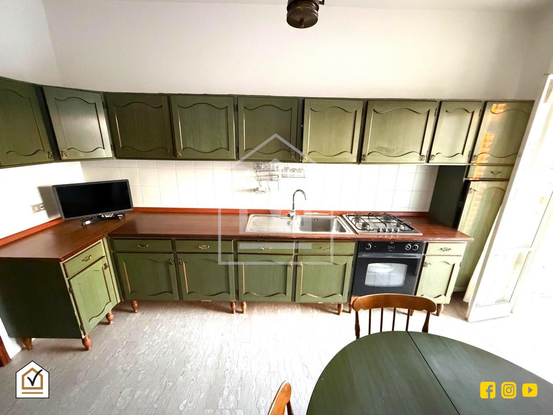 L’ingresso si apre su un accogliente disimpegno che conduce alla cucina abitabile, ampia e funzionale, perfetta per ospitare pranzi e cene in famiglia o con amici. Il grande finestrone, che affaccia verso l’esterno, regala luce diretta e dona accesso al primo balcone.
