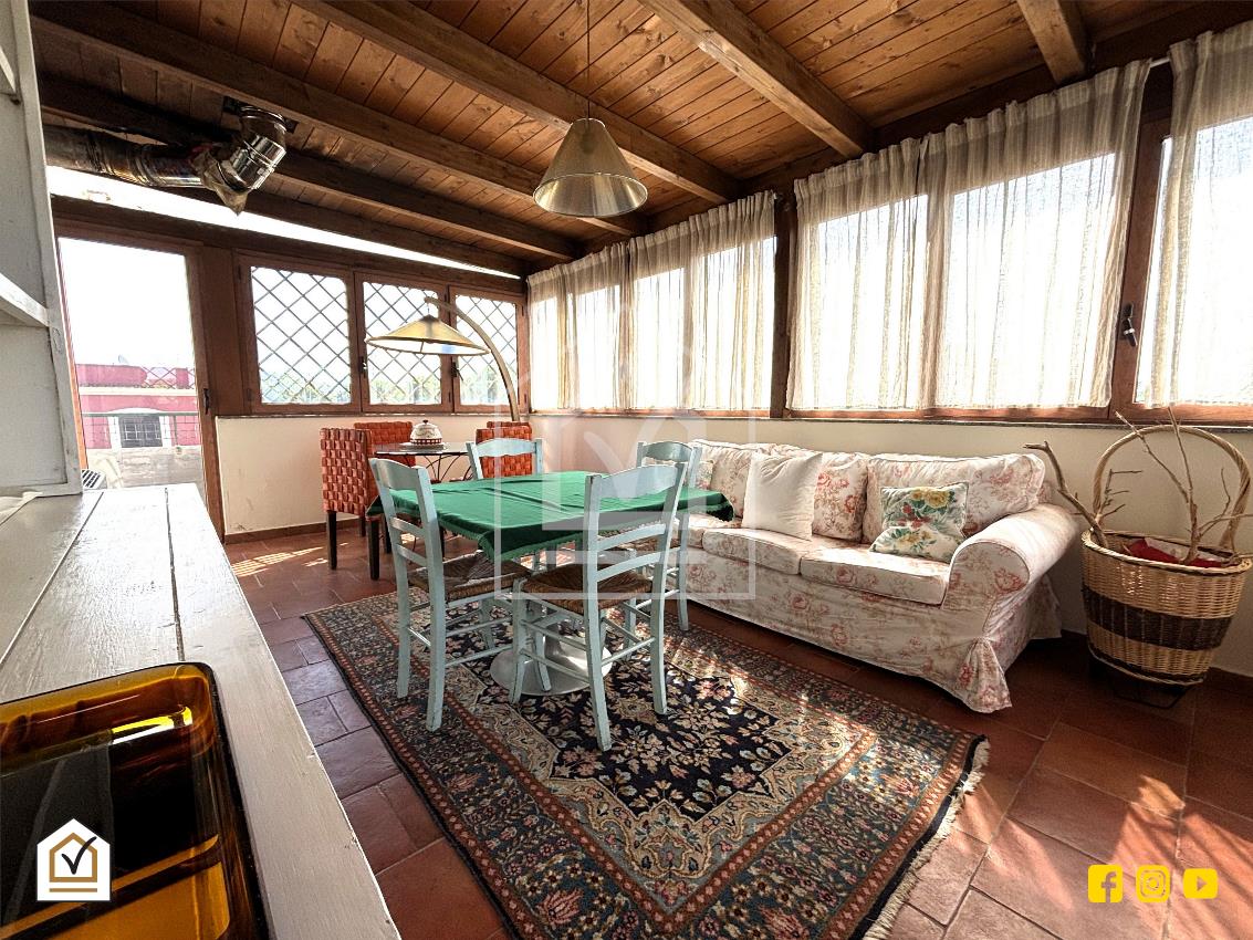 Dal lato opposto si sviluppa una cucina abitabile con cucina in muratura, dal fascino tradizionale e funzionale, che si apre su un secondo balcone, perfetto per una comoda zona lavanderia o per vivere la quotidianità in modo pratico.