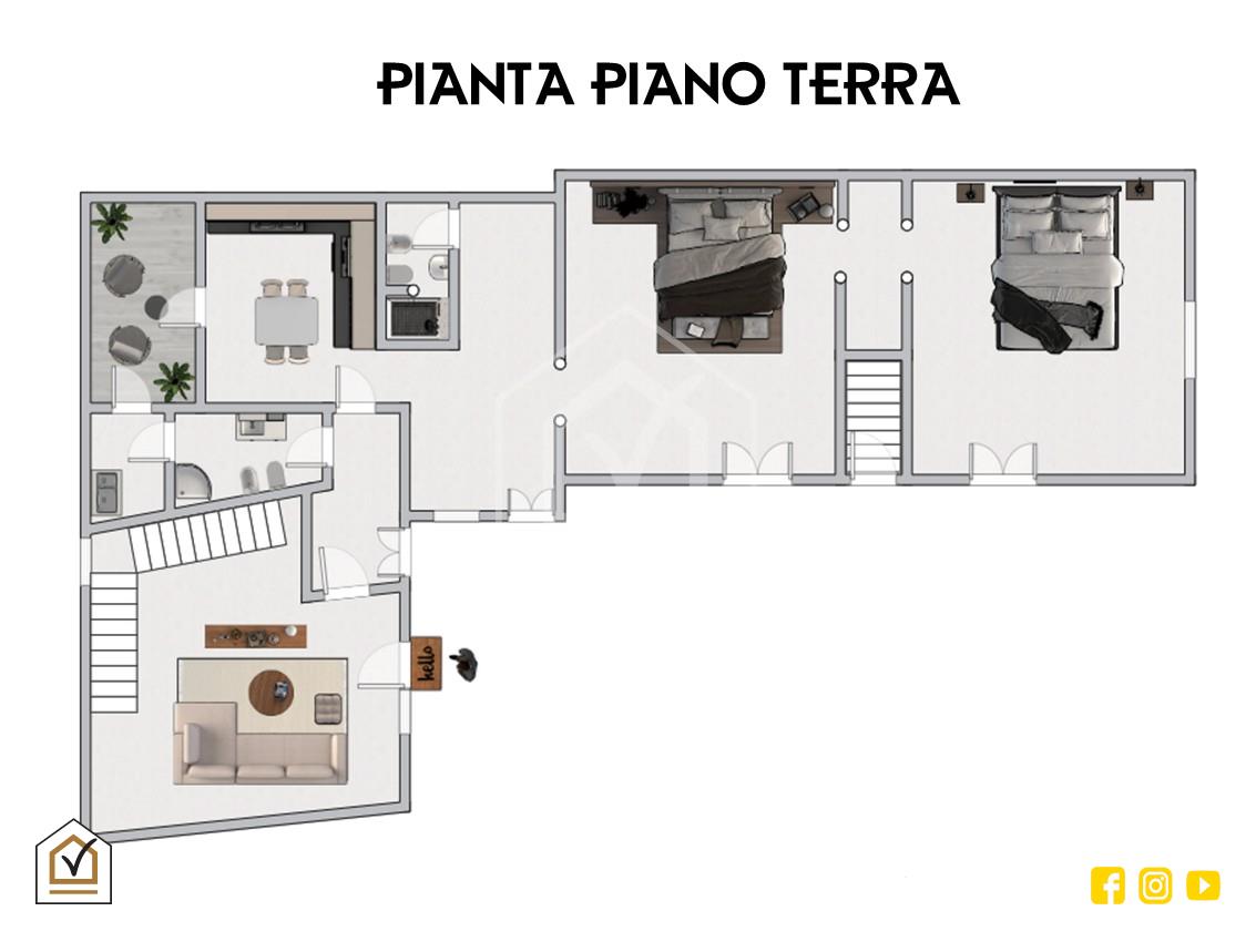 Al piano terra si sviluppa la zona giorno, ampia e accogliente: l’ingresso si apre su un luminoso salone con scalinata a vista che conduce al primo piano.Proseguendo tramite disimpegno troviamo bagno padronale con zona lavanderia, la cucina abitabile con affaccio diretto sul cortiletto e il secondo bagno di servizio. Completano il livello due camere matrimoniali, versatili e spaziose ideali anche come studio o camera per ospiti.