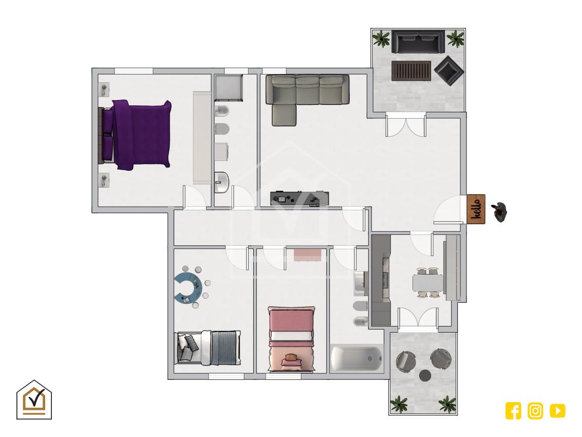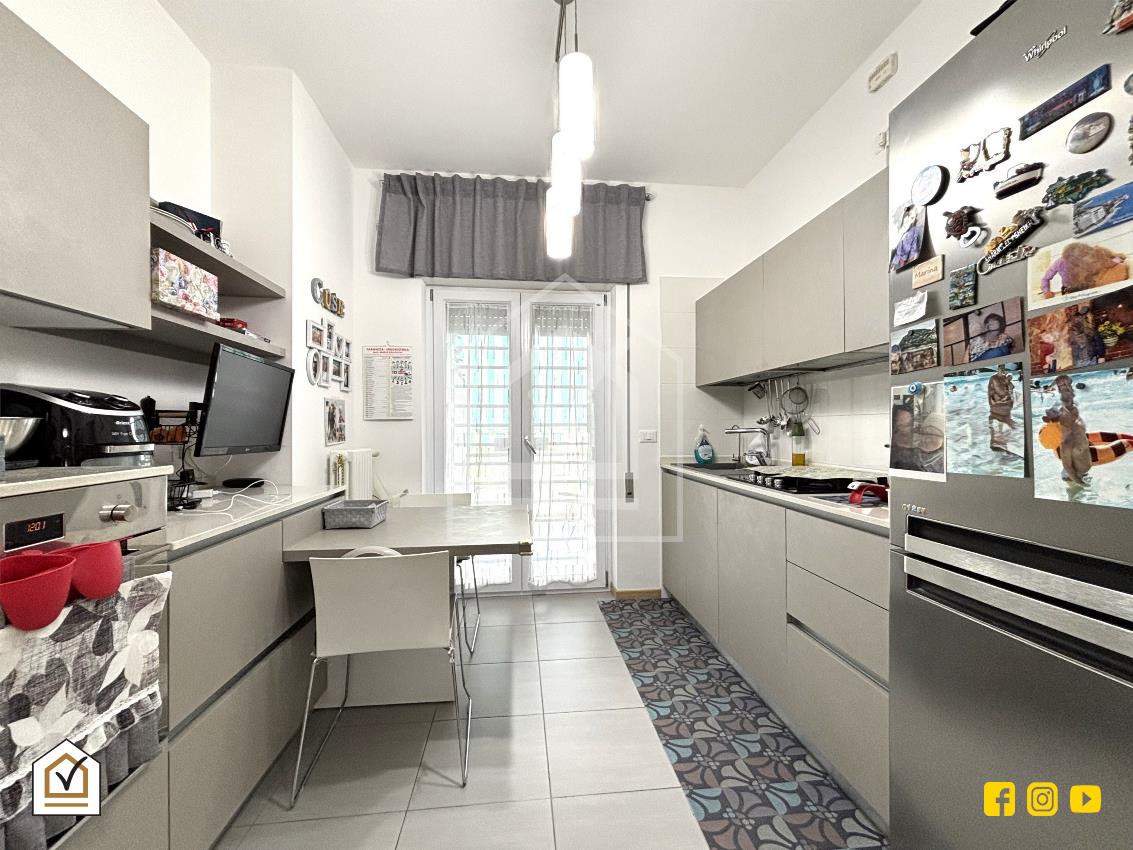 L’ingresso si apre su un ampio e luminoso salone, con accesso diretto al balcone principale, ideale per godersi momenti di relax all’aperto. Sulla sinistra si trova la cucina abitabile, spaziosa e funzionale, anch’essa con affaccio esterno.