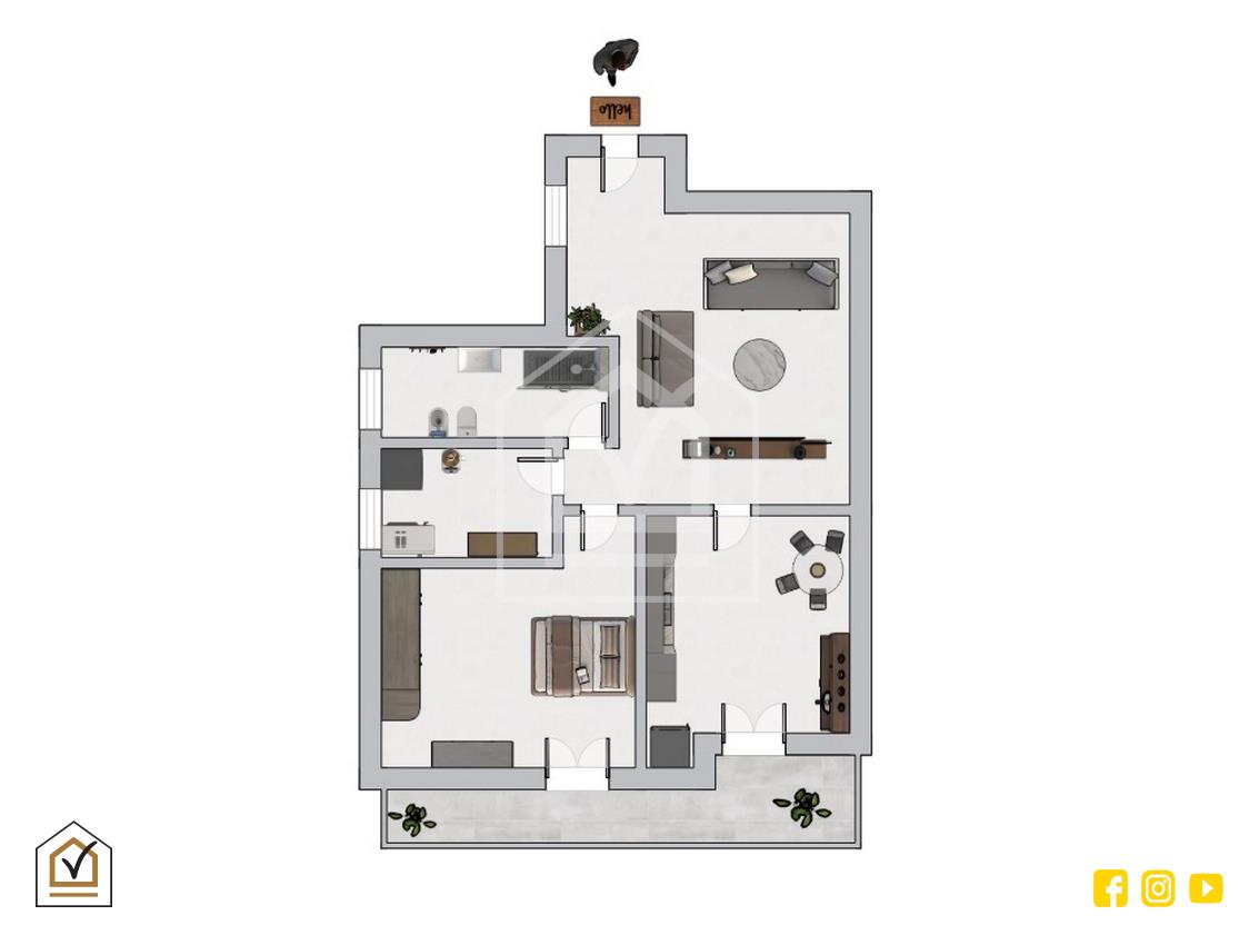 L’appartamento si compone di un ampio soggiorno con zona pranzo, cucina abitabile, camera da letto matrimoniale e bagno completo. Gli ambienti, spaziosi e ben distribuiti, offrono comfort e funzionalità ideali sia per giovani coppie sia per chi desidera un’abitazione pratica e accogliente.