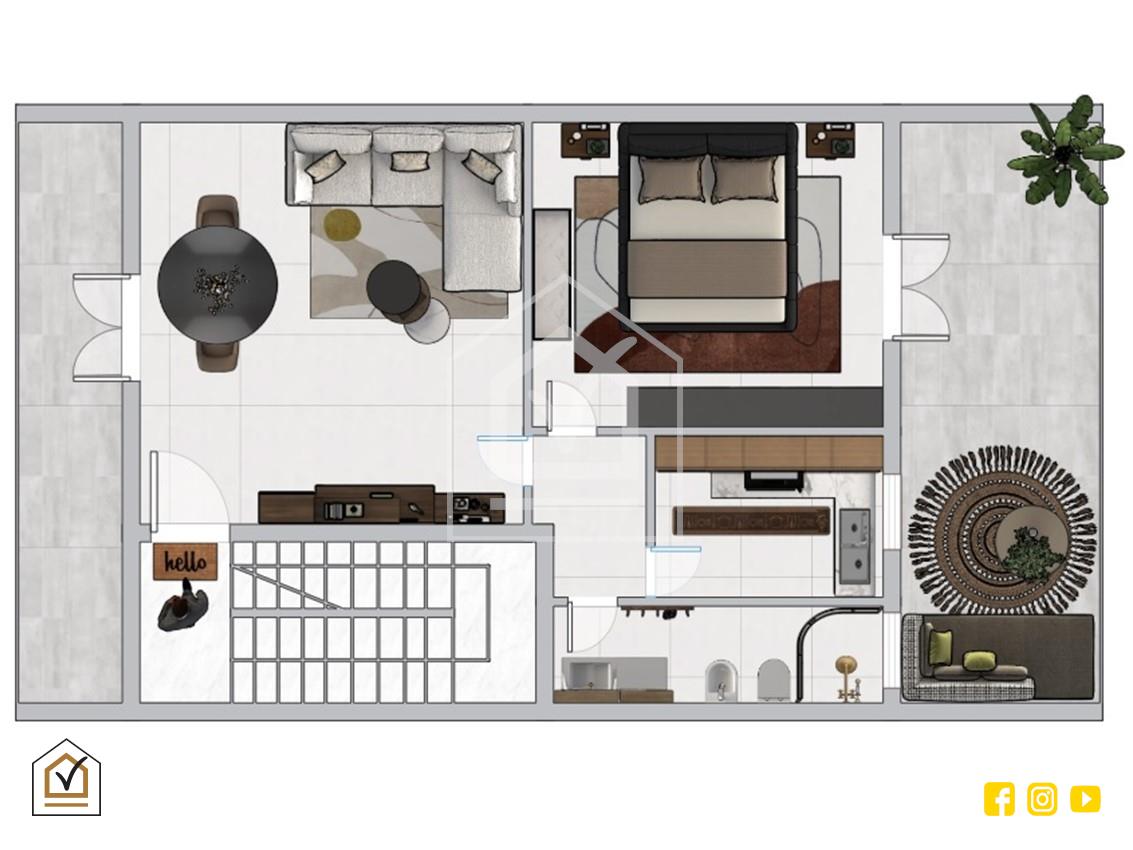 All’ingresso, la casa ti accoglie con un luminoso soggiorno che si apre su un balcone vivibile, un ambiente ideale per accogliere amici, trascorrere momenti di relax o semplicemente lasciarsi avvolgere dalla luce naturale. Dal soggiorno si accede a un disimpegno che introduce al cucinino e al bagno finestrato, e nella zona notte, dove la camera matrimoniale, spaziosa e ariosa, diventa un rifugio di benessere e intimità. Da qui, l’accesso diretto al terrazzino a livello regala un prolungamento naturale della stanza, perfetto per colazioni all’aperto o momenti di assoluto relax.