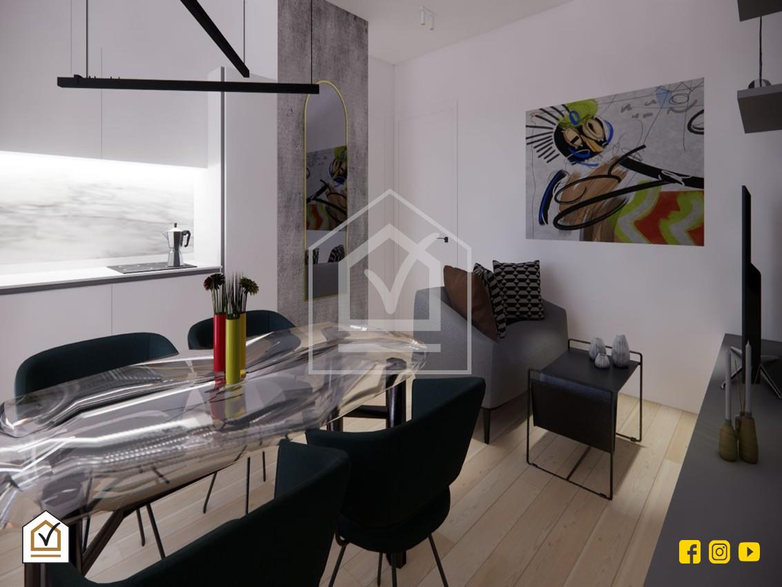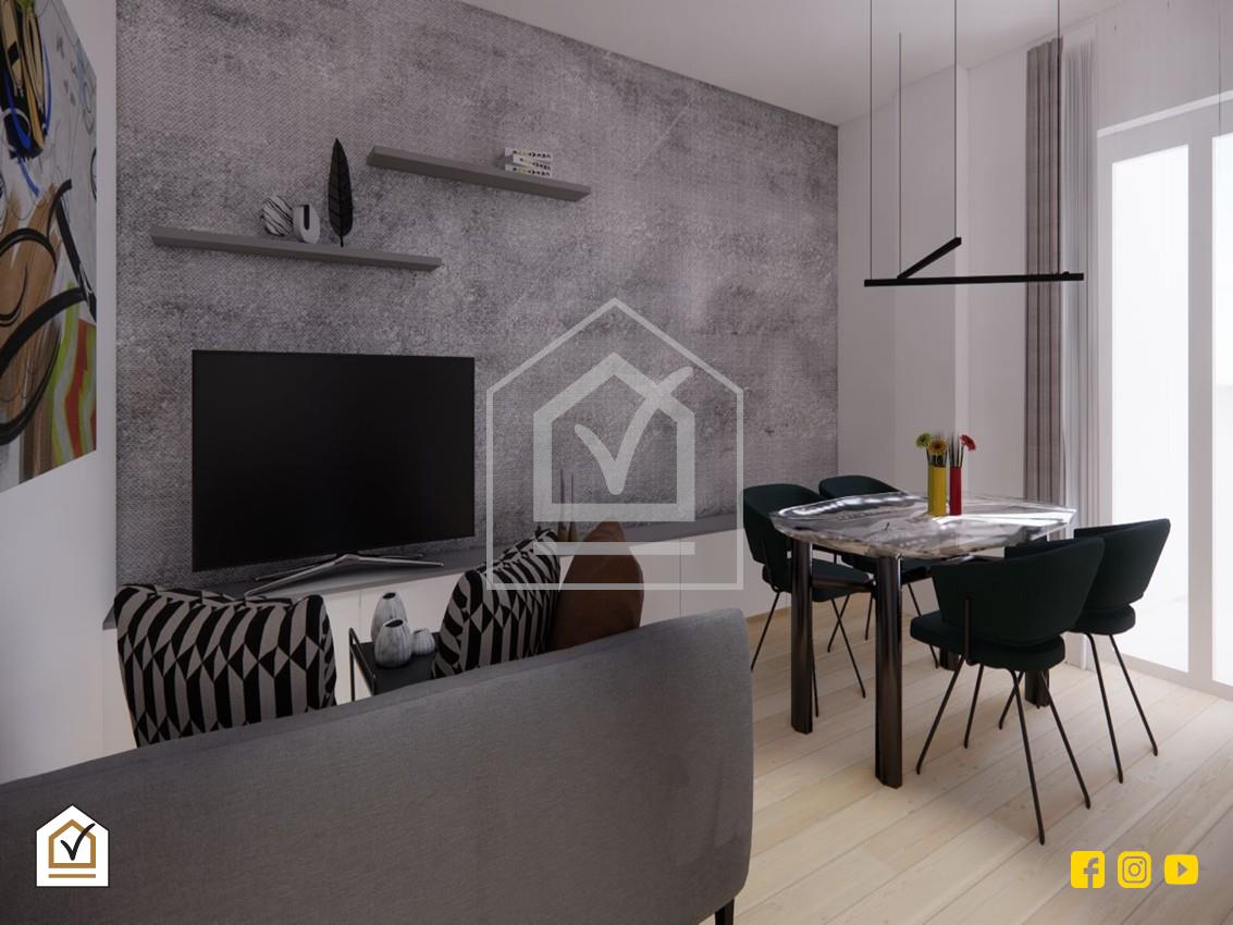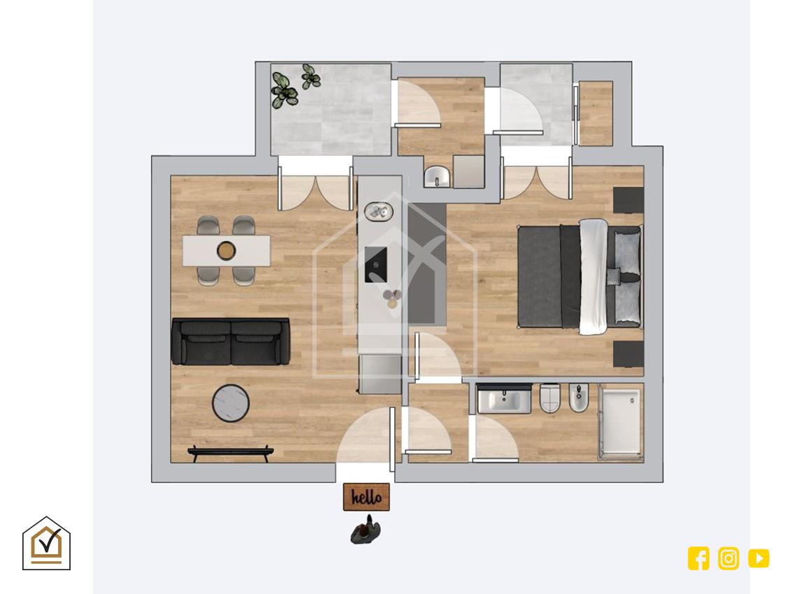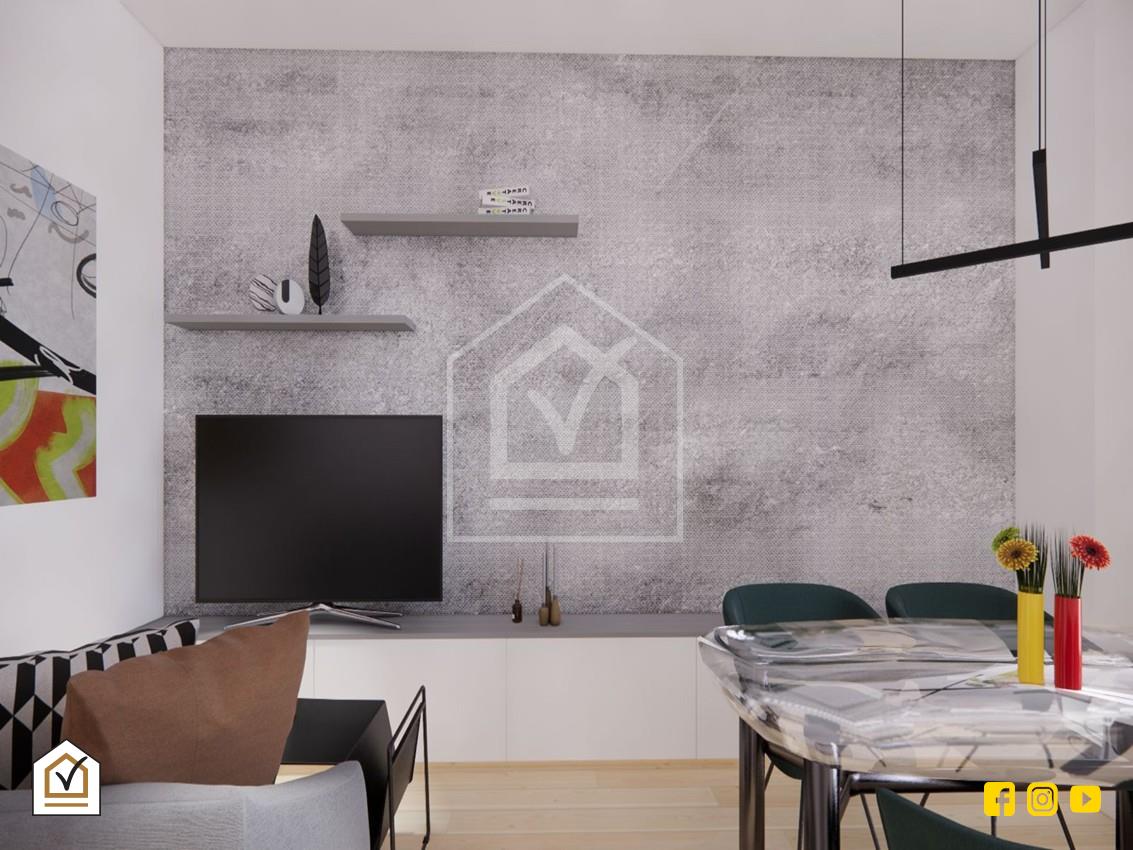 L’abitazione si distingue per una distribuzione moderna e funzionale degli spazi. L’ingresso si apre su un ampio ambiente open-space che integra in modo armonioso soggiorno e cucina, con accesso diretto a un comodo balcone che amplia la vivibilità della zona giorno.