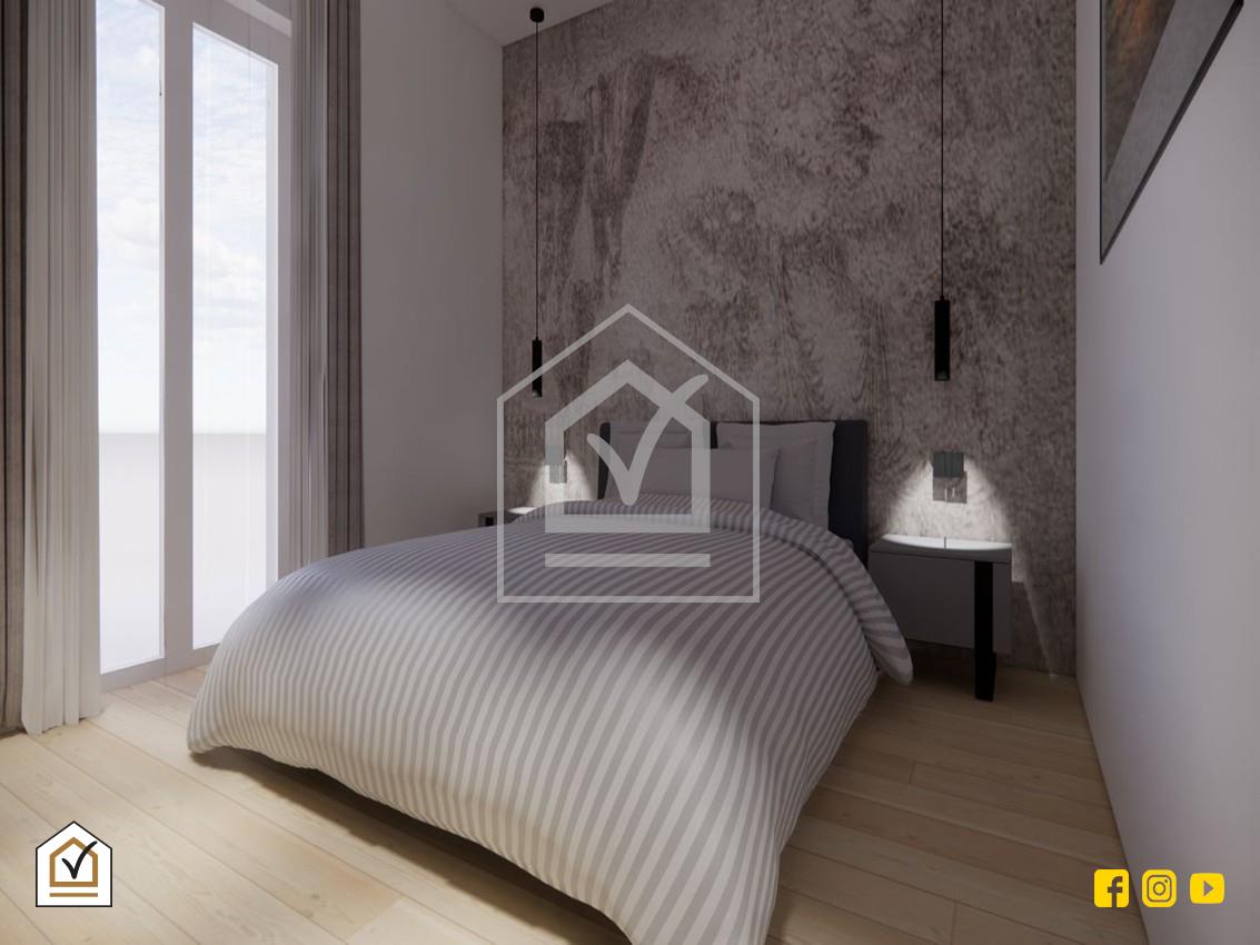 Alla destra dell’ingresso, un pratico disimpegno conduce alla zona notte, composta da un bagno curato nei dettagli e da una spaziosa camera da letto con accesso a un secondo balcone. Quest’ultimo ospita un vano tecnico e una zona lavanderia, soluzioni pratiche che uniscono funzionalità ed estetica.