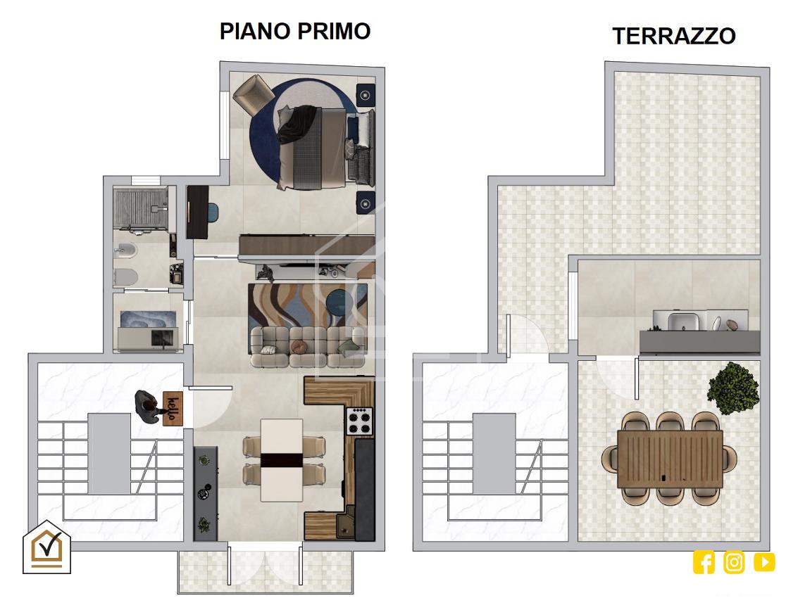 L’appartamento si compone di un’ampia zona living con angolo cottura e accesso diretto al balcone, zona notte luminosa, antibagno e bagno finestrato elegantemente rifinito. Completa la proprietà un terrazzo esclusivo di 30 mq, ideale per godere degli spazi esterni in totale privacy.