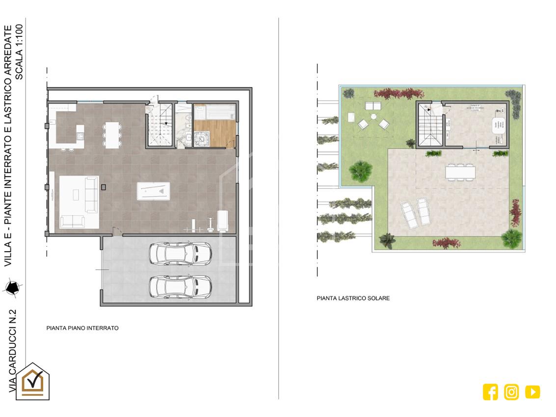 - Piano Interrato: spaziosa tavernetta con bagno e cantina per una metratura totale di circa 147 mq e box auto con accesso diretto di 55 mq;