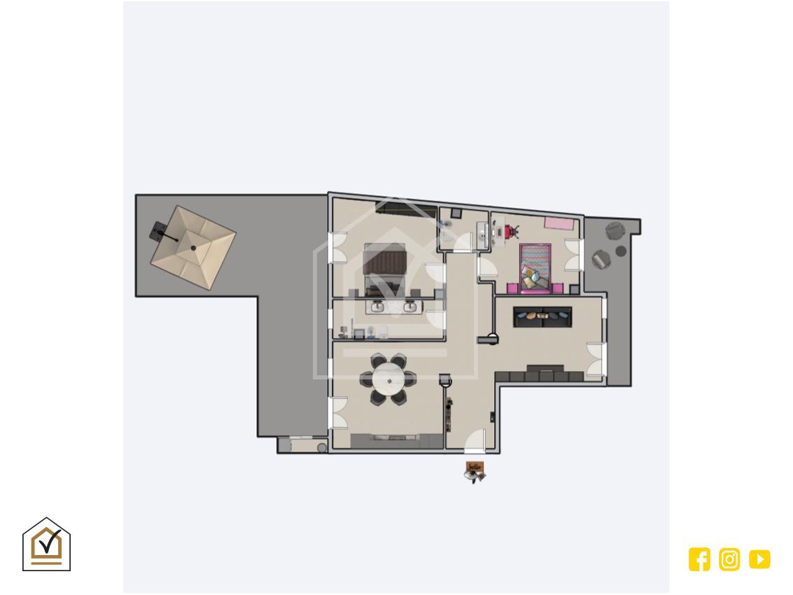 L'appartamento si distingue per la sua doppia esposizione che garantisce ottima luminosità tutto il giorno e soprattutto per l'ampio spazio esterno ideale per pranzi, cene o momenti di relax.