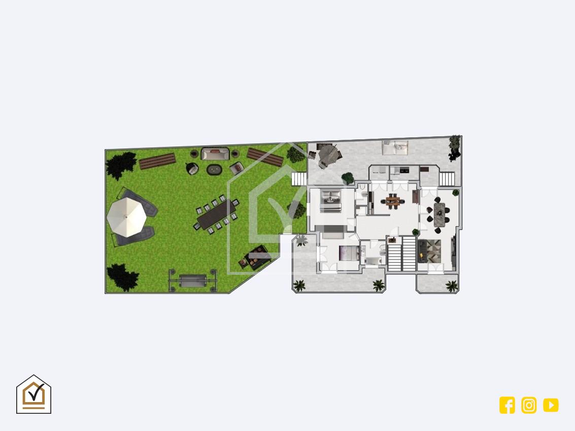 - Dal terrazzo, una scala esterna conduce all’ampio giardino privato di circa 250 mq, un’oasi verde di tranquillità che offre innumerevoli possibilità d’uso: una zona relax, un angolo barbecue, un piccolo orto domestico o uno spazio giochi per i più piccoli. Un ambiente perfetto per vivere all’aria aperta in totale privacy.