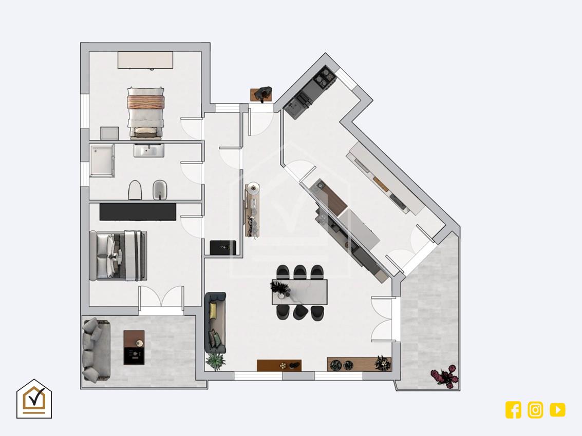 Uno dei punti di forza di questo appartamento è la presenza di balconi ampi e abitabili, che avvolgono gran parte dell’abitazione. Ogni stanza gode di uno sbocco verso l’esterno, offrendo molta luminosità e la possibilità di vivere gli spazi aperti durante tutto l’anno.