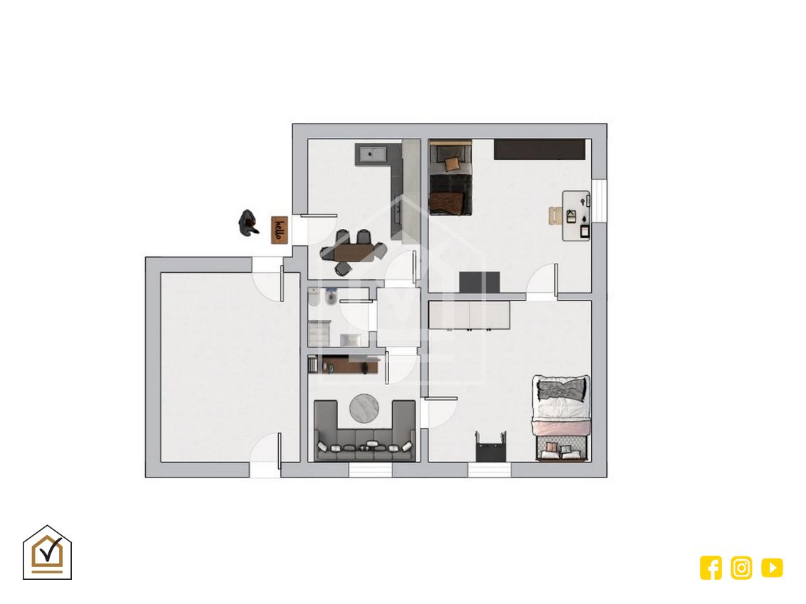 L’immobile si sviluppa su una superficie di circa 60 mq e si compone di zona giorno, due camere ben distribuite, un bagno e un pratico atrio interno, perfetto come spazio di sfogo o per momenti di relax all’aperto.