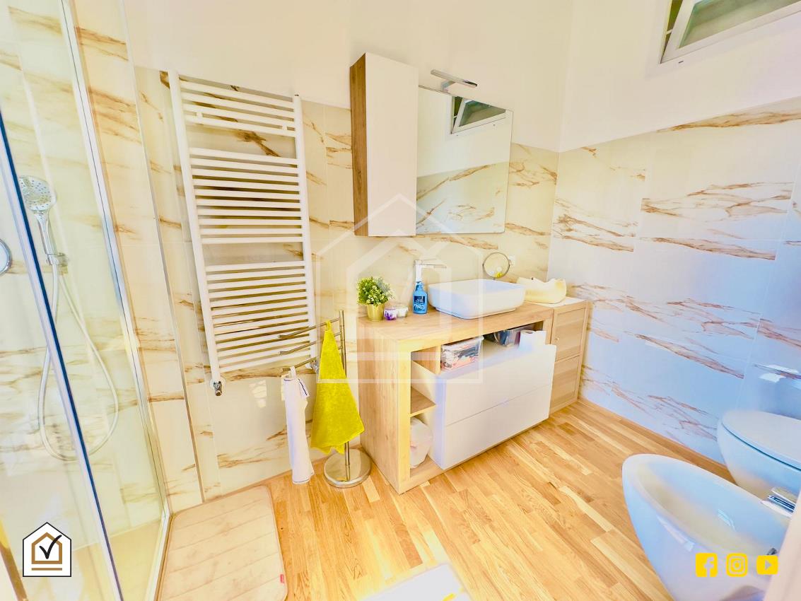A completare l’immobile vi sono un secondo bagno di servizio, elegantemente rifinito con materiali di qualità, e un ripostiglio, comodo e utile per riporre oggetti e accessori.