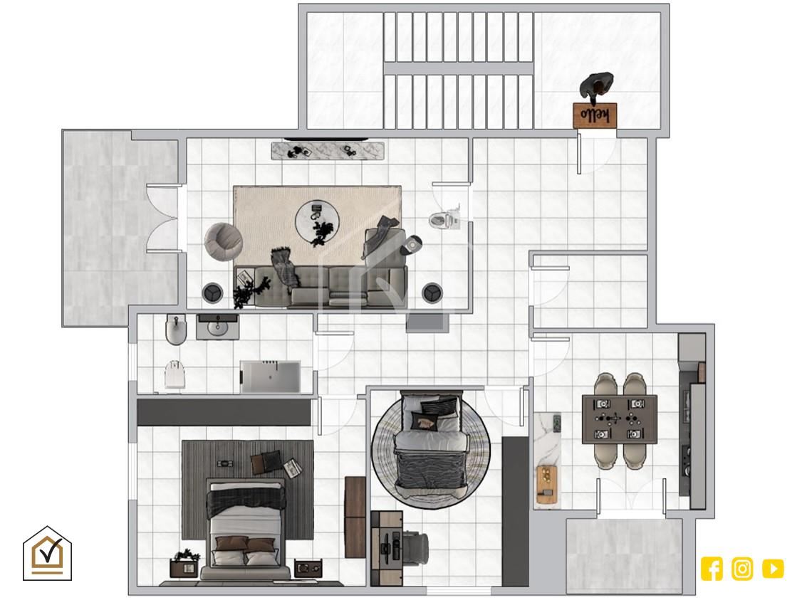 All’ingresso ci accoglie un disimpegno che introduce alla zona giorno, pensata per essere funzionale e conviviale. La cucina abitabile offre uno spazio pratico e completo, con accesso diretto a un balcone ideale per piccoli momenti all’aperto. Il soggiorno, molto ampio e naturalmente luminoso, si apre invece su un balcone abitabile che amplia gli spazi e permette di vivere con facilità anche l’esterno. La zona notte è ben separata e include due camere da letto accoglienti, un bagno padronale finestrato e un ripostiglio, utilissimo per organizzare la casa in modo pratico ed efficiente. Gli interni si presentano in ottime condizioni, curati e già pronti per essere abitati.