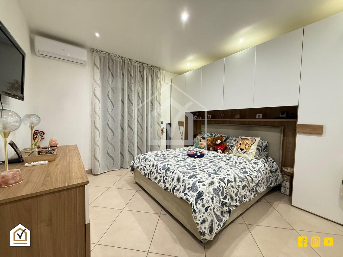 L'appartamento dispone di due camere da letto: una matrimoniale e una cameretta. Entrambe le camere godono di accesso diretto ai balconi, offrendo ulteriori spazi esterni e una piacevole vista. La camera matrimoniale è dotata di un bagno en suite con vasca, mentre l'altro bagno, anch'esso finestrato, è completo di box doccia.