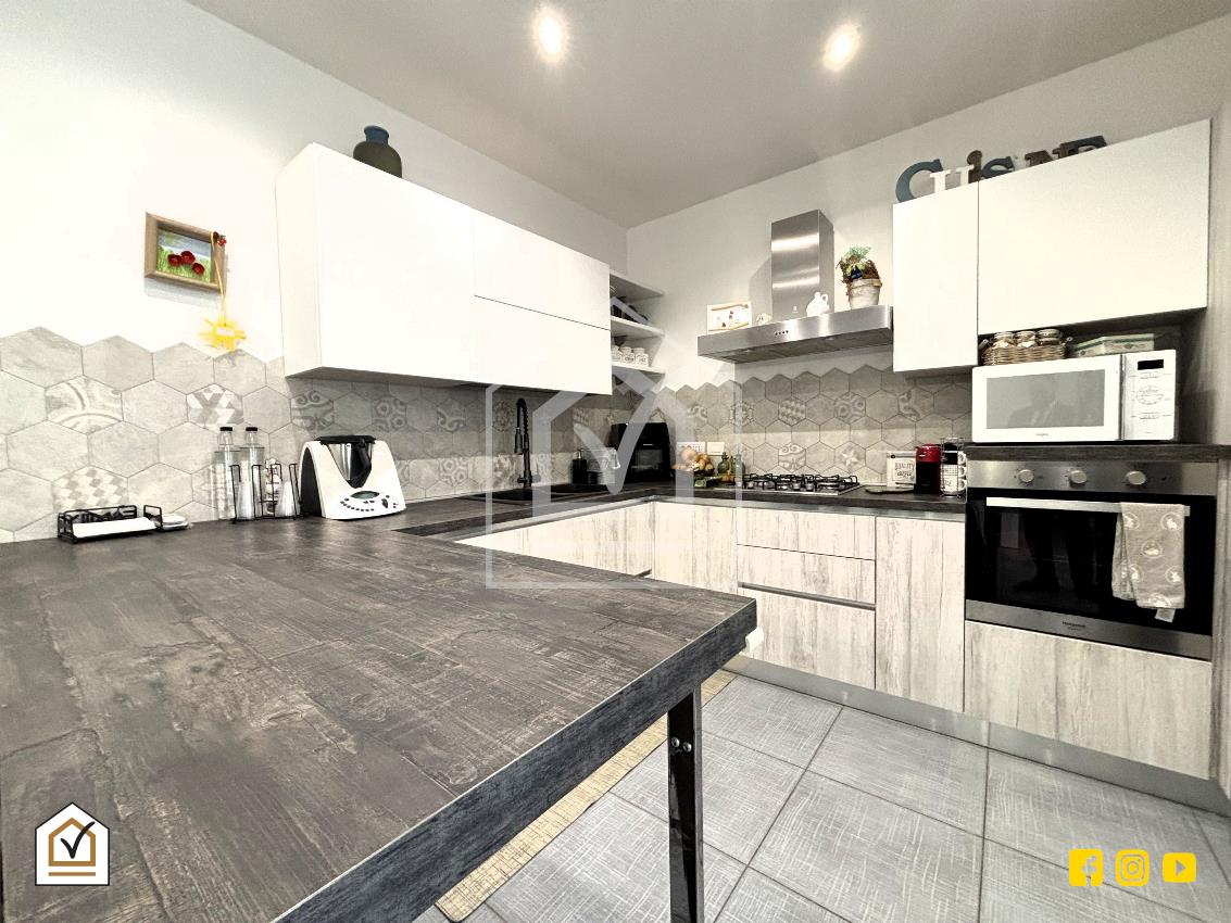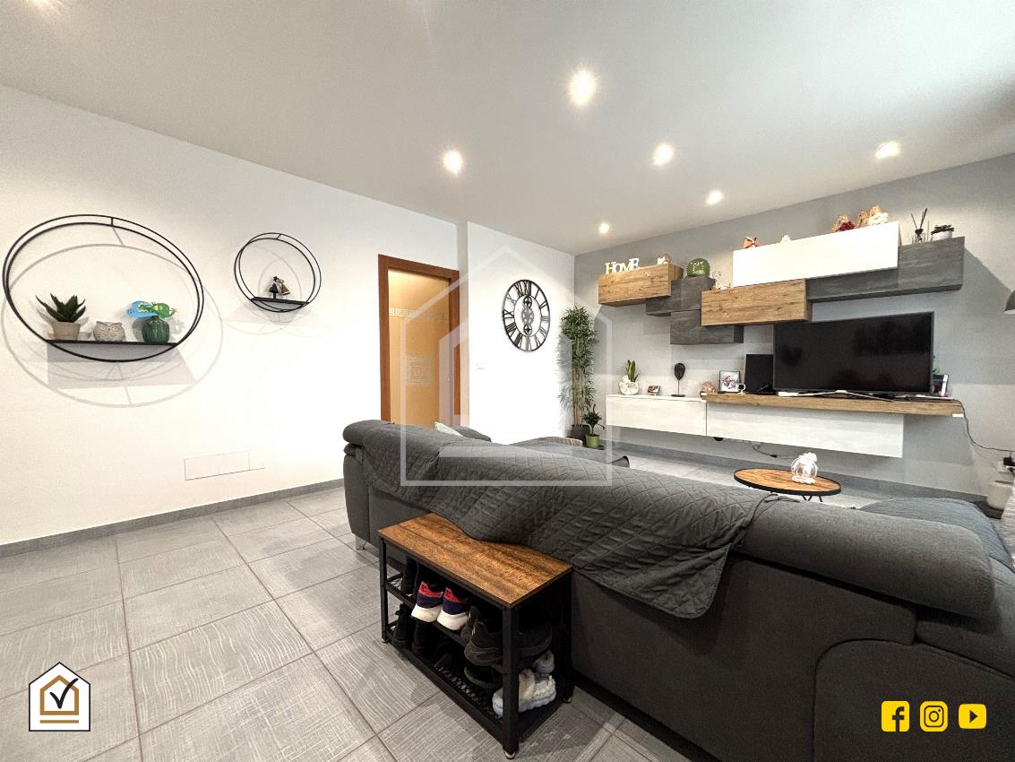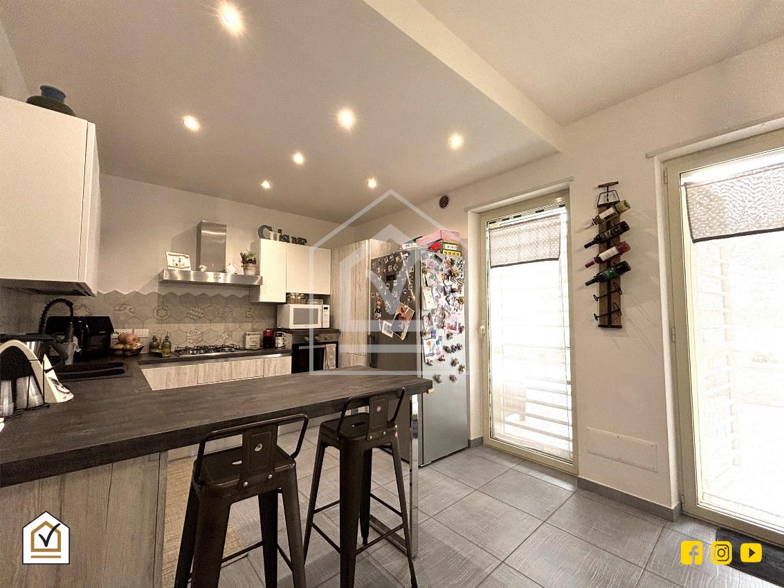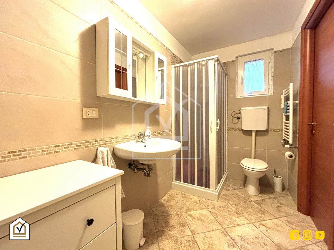 La tavernetta rappresenta un vero valore aggiunto: vi si accede sia dall’interno sia tramite ingresso indipendente con doppia vetrata scorrevole in PVC, che la rende luminosa e perfetta anche come spazio per ospiti o come ambiente ricreativo. La pavimentazione in gres effetto pietra e la controsoffittatura con faretti a LED creano un ambiente caldo e accogliente, completo di angolo cottura, area living e bagno.