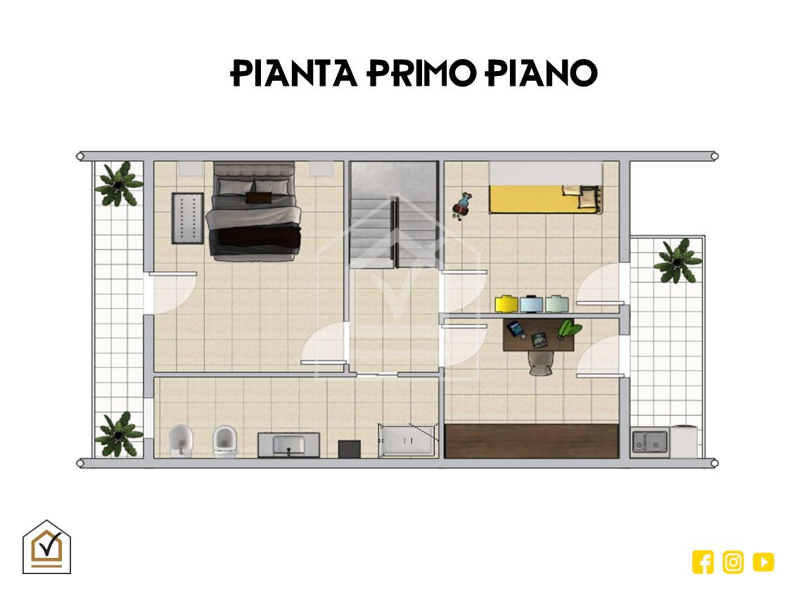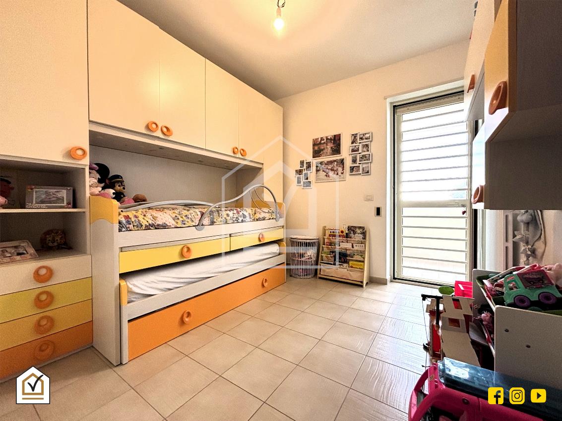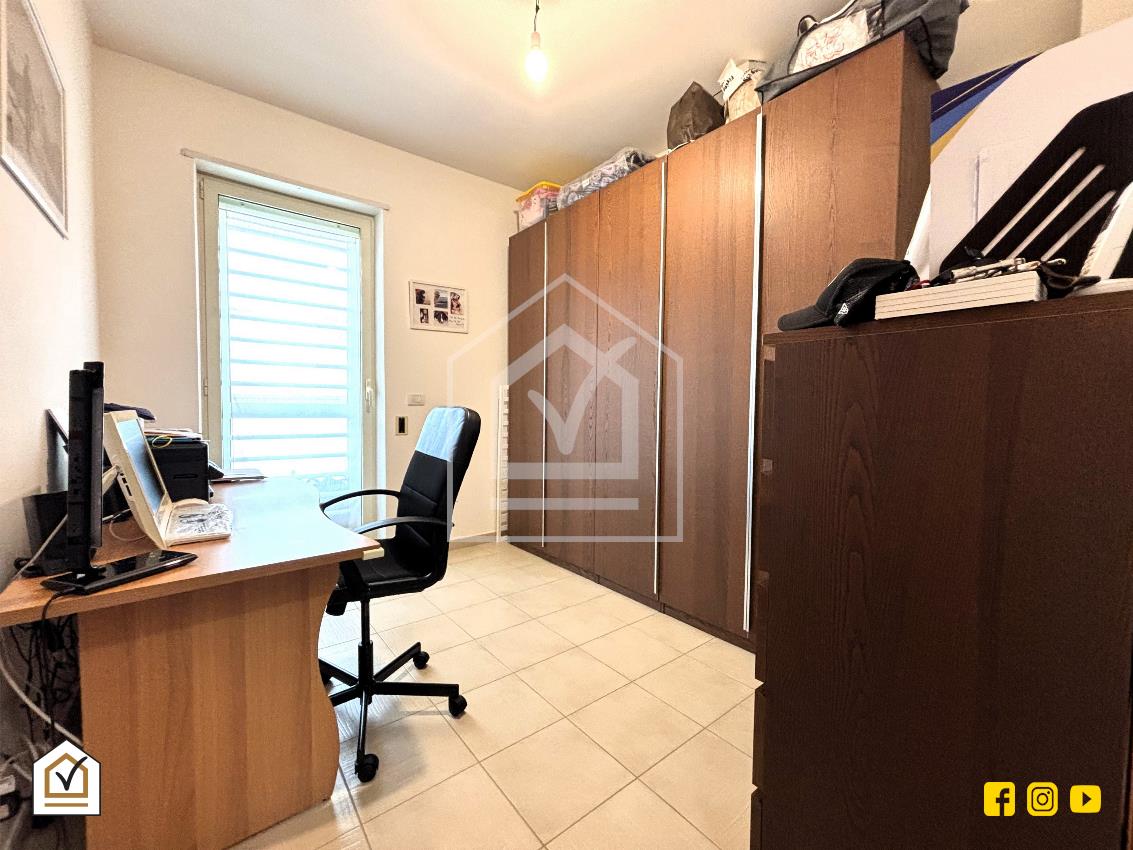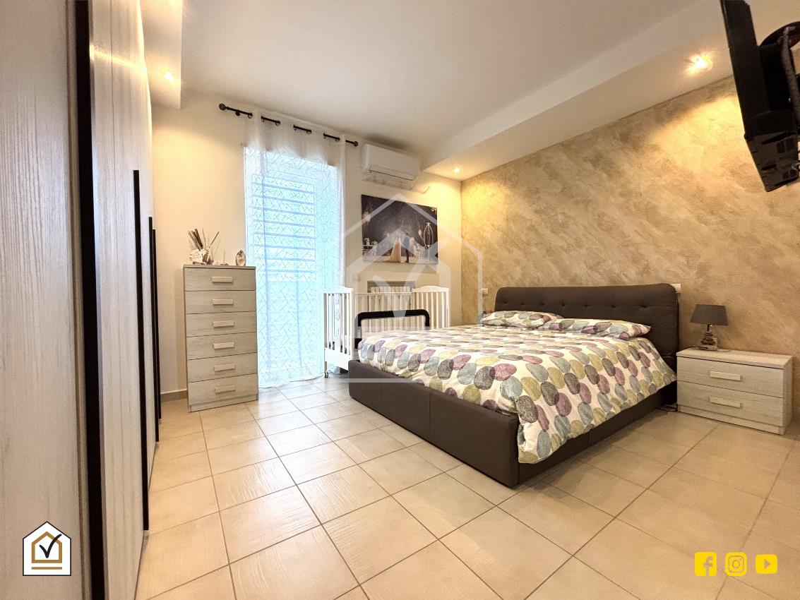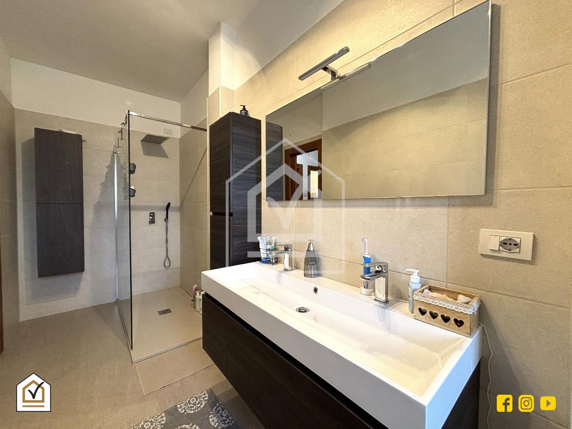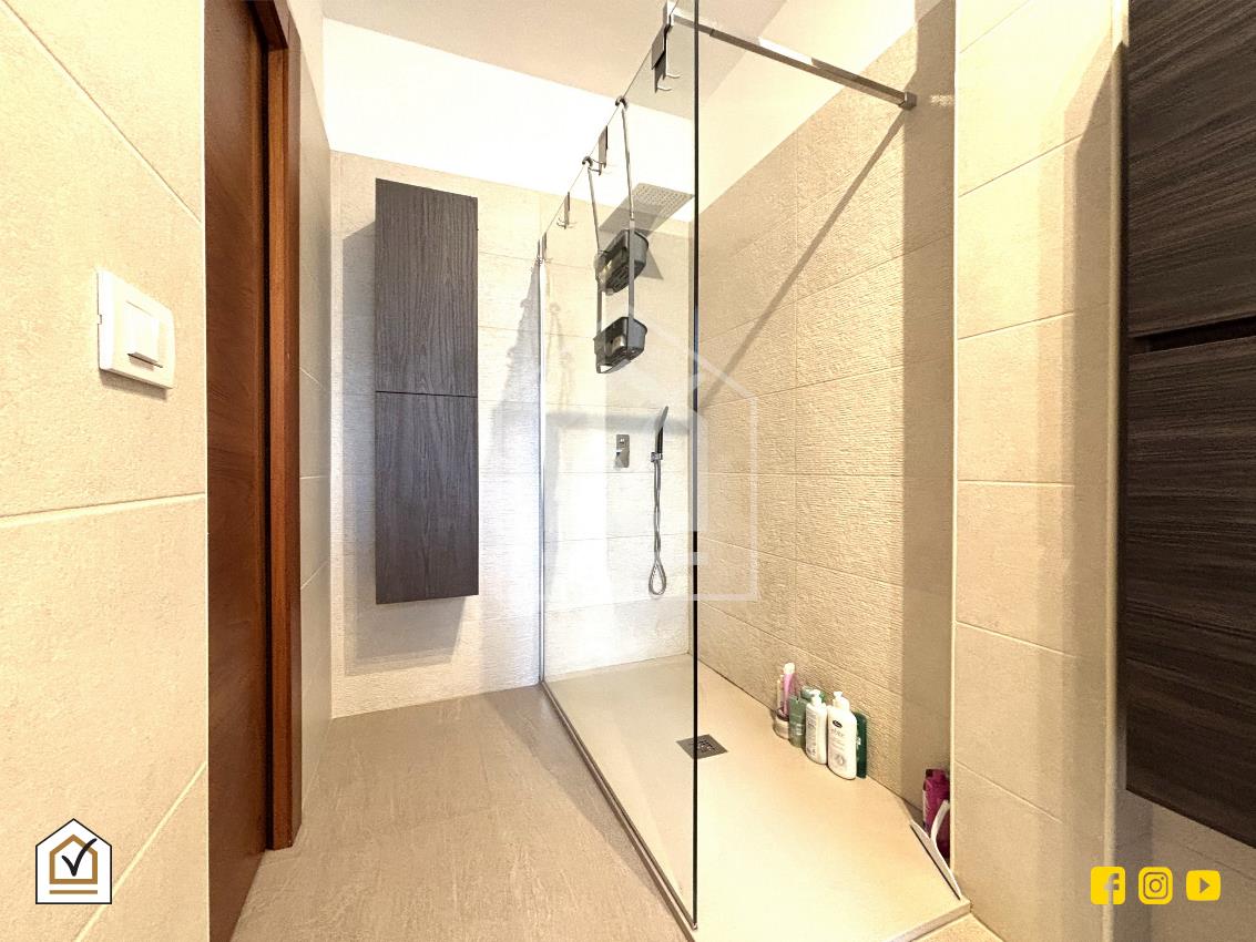 Tramite una comoda scala interna si raggiunge la zona notte, un ambiente luminoso grazie alla doppia esposizione sui due balconi, uno dei quali attrezzato con comoda zona lavanderia. La camera matrimoniale è impreziosita da una controsoffittatura con faretti a LED che crea un’atmosfera intima e raffinata. Qui troviamo anche una cameretta e una camera studio, oltre all'ampio bagno padronale, dotato di moderna doccia walk-in, soluzione ideale per chi ama design e praticità.