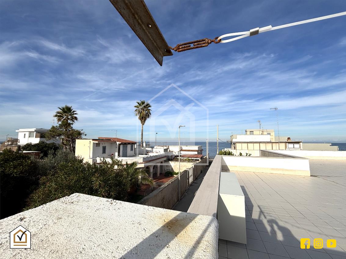 All’esterno, una scala conduce al lastrico solare attrezzato con cucinino e bagno, da cui si può ammirare una splendida vista mare, un valore aggiunto che rende questa proprietà davvero unica.