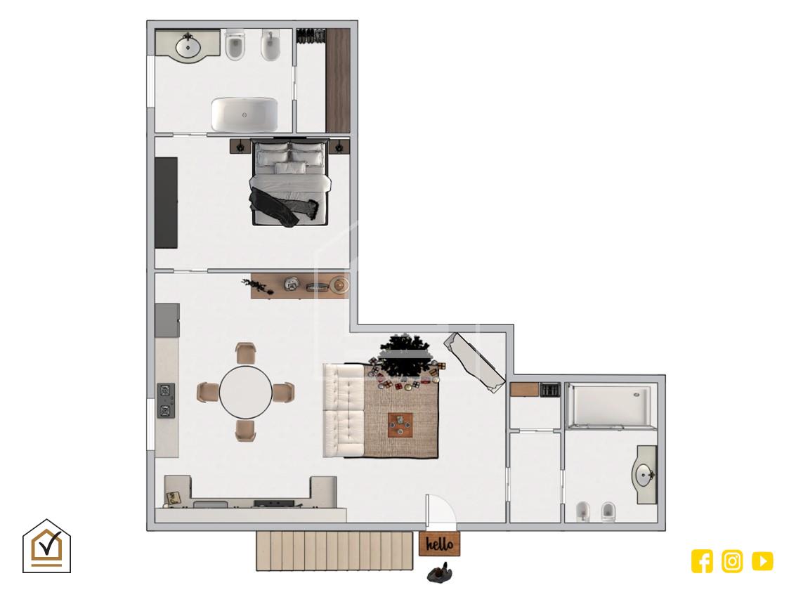 La zona notte ospita una spaziosa camera matrimoniale, accompagnata da un elegante bagno padronale con vasca, ideale per concedersi momenti di relax.