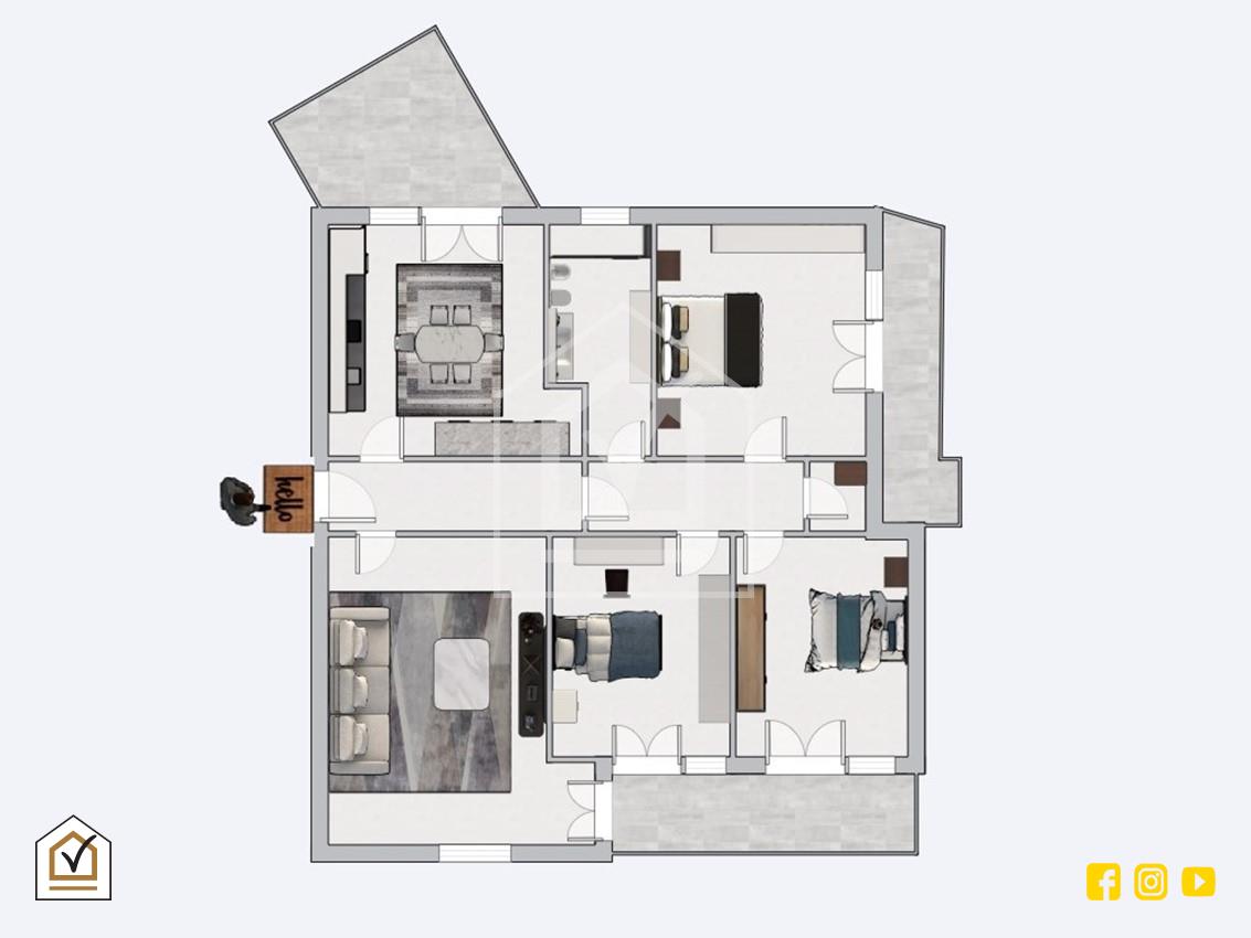 La proprietà dispone inoltre di balconi di generose dimensioni, che assicurano aria e luminosità agli ambienti, e di una comoda cantina al piano terra, utile come spazio aggiuntivo per deposito o hobby.