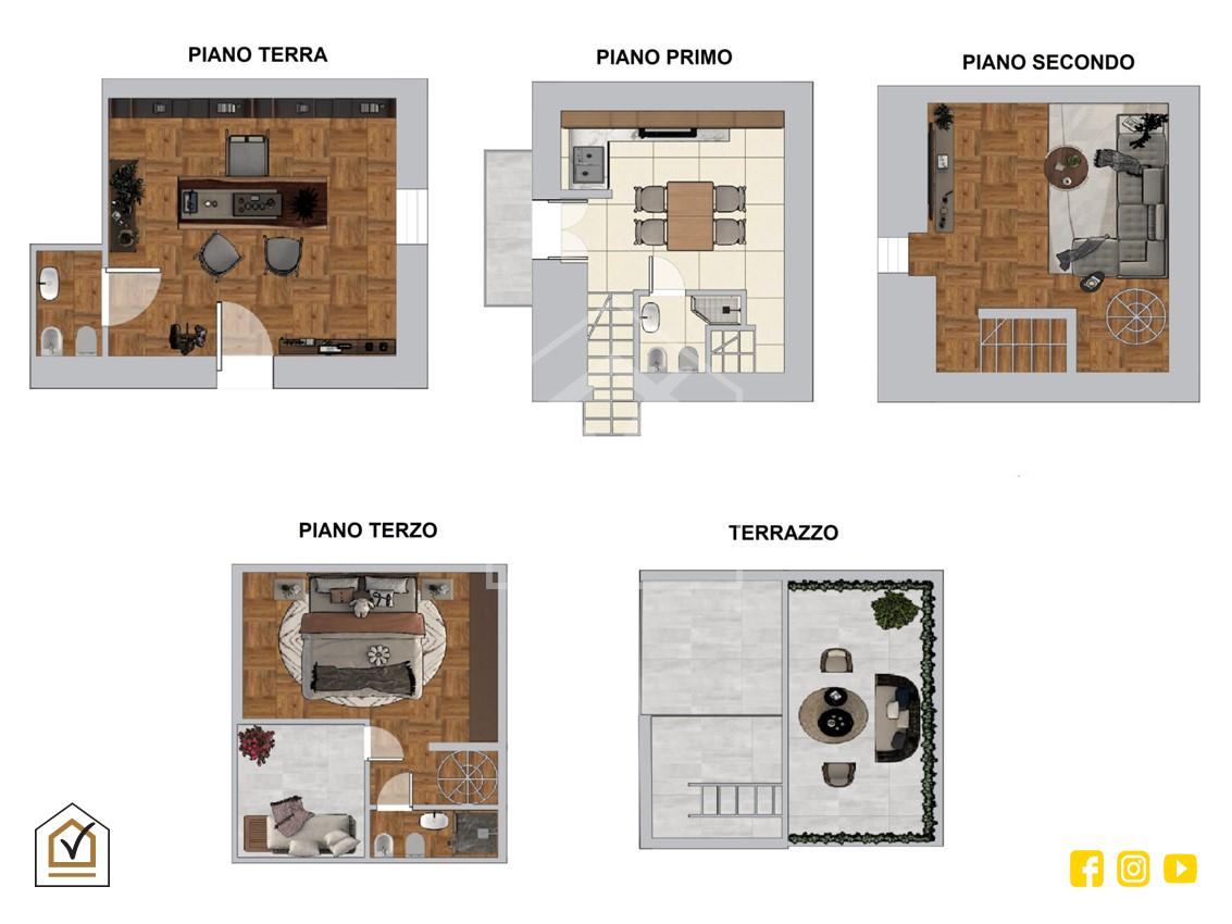 Al secondo piano si apre un soggiorno luminoso e accogliente, mentre il terzo livello ospita la camera matrimoniale con bagno privato. A completare la proprietà, il lastrico solare all’ultimo piano, uno spazio sempre prezioso nel centro storico, utilizzabile come area relax o per eventuali necessità di servizio.