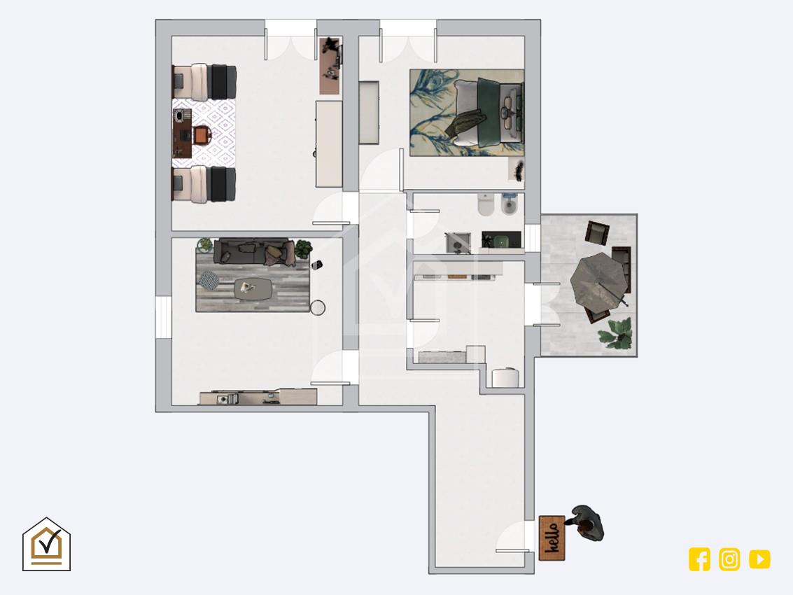 L’immobile, di circa 75 mq, gode di tripla esposizione, che assicura luminosità e piacevole ventilazione naturale in ogni ambiente.