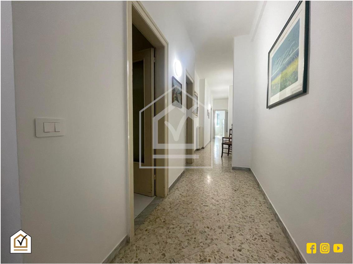 L’ingresso si apre su un comodo disimpegno angolare che conduce alla prima spaziosa camera con balcone esterno sulla via e successivamente si estende lungo tutto l'immobile fornendo l'accesso ai successivi ambienti. L'ampio salone è caratterizzato da una bellissima esposizione angolare, perfetto per accogliere gli ospiti e per essere utilizzato come zona pranzo e cena, il cucinino è confortevole e completo di finestra mentre l'ultima camera da utilizzare come camera matrimoniale, dispone di una buona metratura e della relativa esposizione finestrata. Completano la proprietà due bagni ben distribuiti.