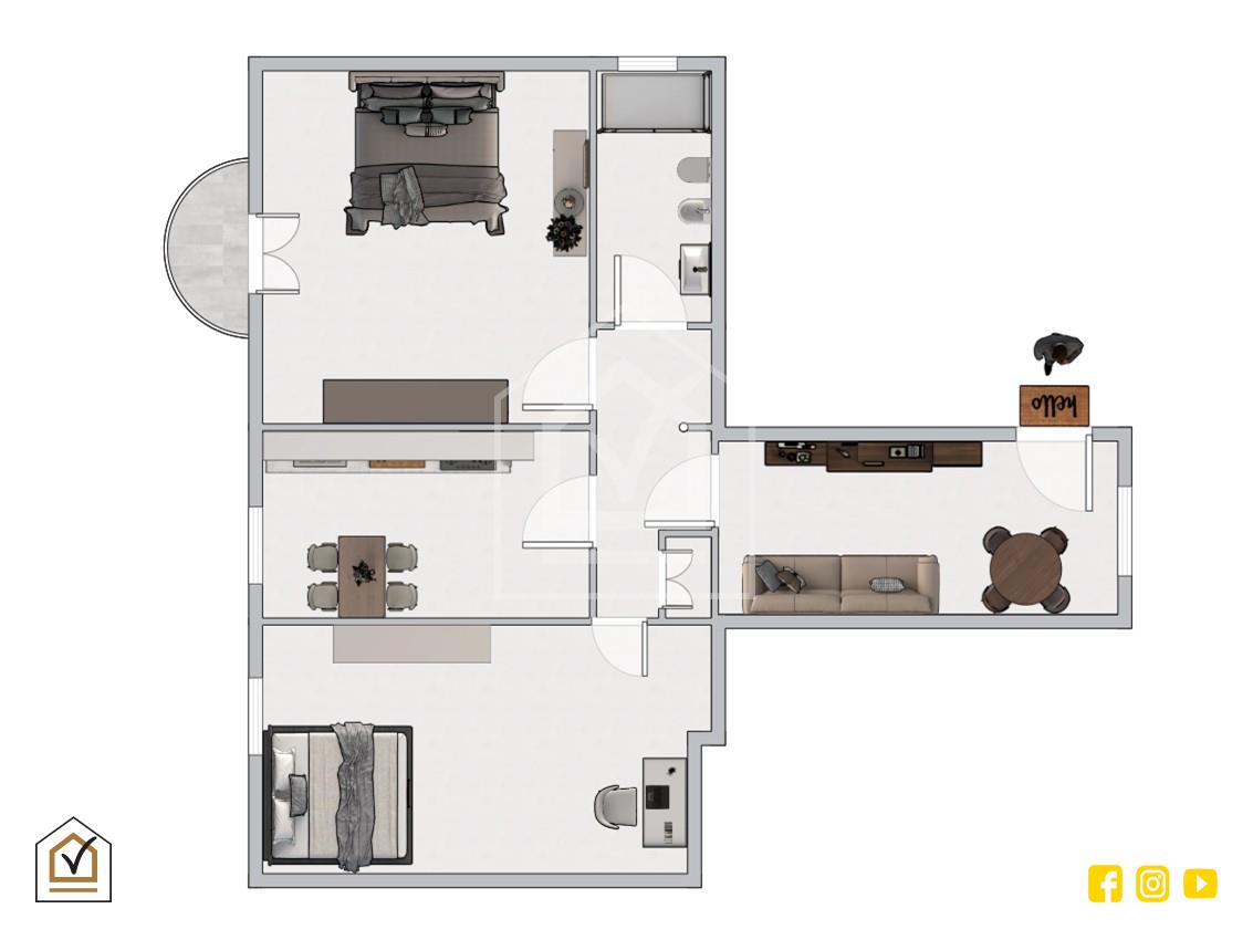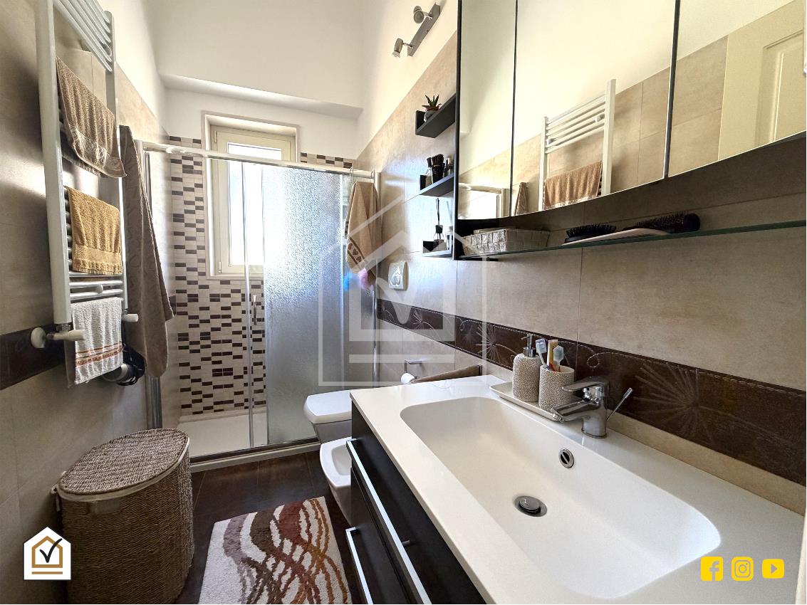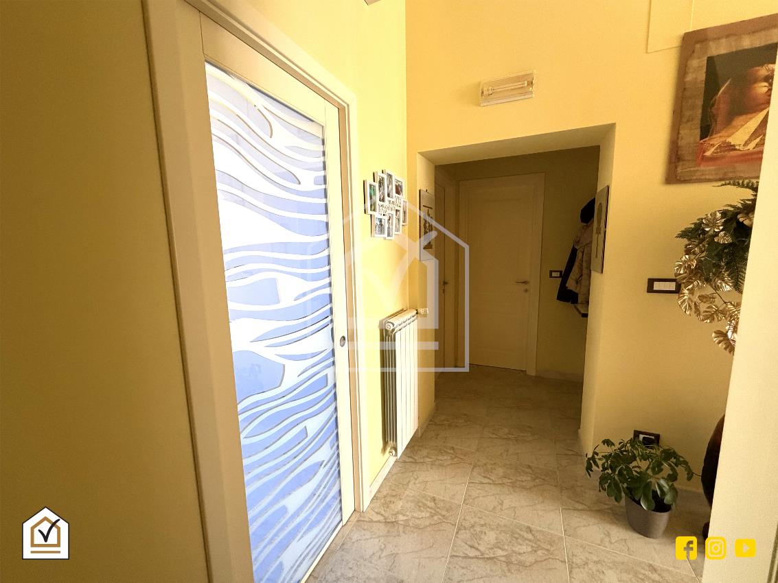 L’appartamento si presenta in ottimo stato interno, curato e pronto da abitare. L’ingresso si apre su un accogliente salone finestrato, ambiente ampio e ben illuminato che rappresenta il cuore della casa, ideale per vivere momenti di relax e convivialità. Dal disimpegno si accede alla cucina abitabile, spaziosa e funzionale, perfetta per la quotidianità.