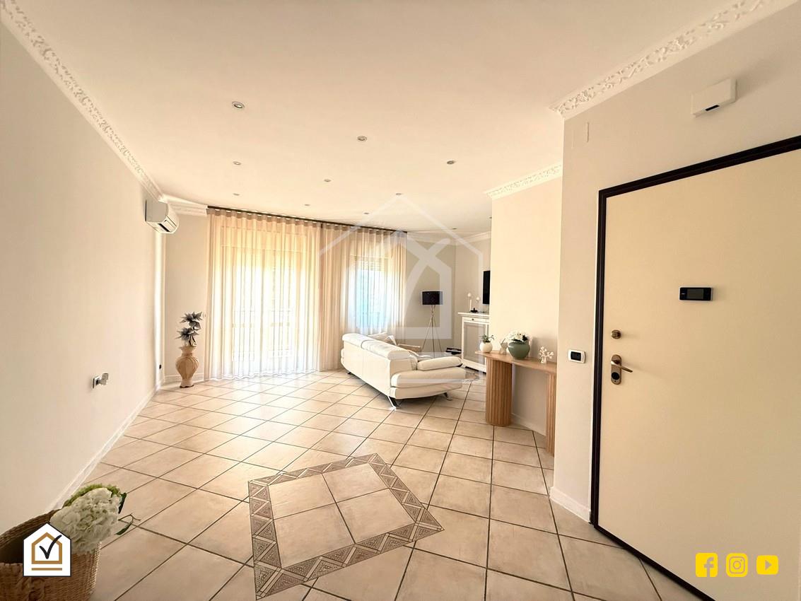 A pochissima distanza dalla fermata della metropolitana “Tesoro”, in una zona strategica e perfettamente servita da attività commerciali, scuole e servizi pubblici, proponiamo in vendita un’elegante e raffinata abitazione di 4 vani oltre accessori, estesa su una superficie di circa 100 mq, situata al 5° piano di una palazzina signorile costruita nel 2001 e dotata di ascensore.