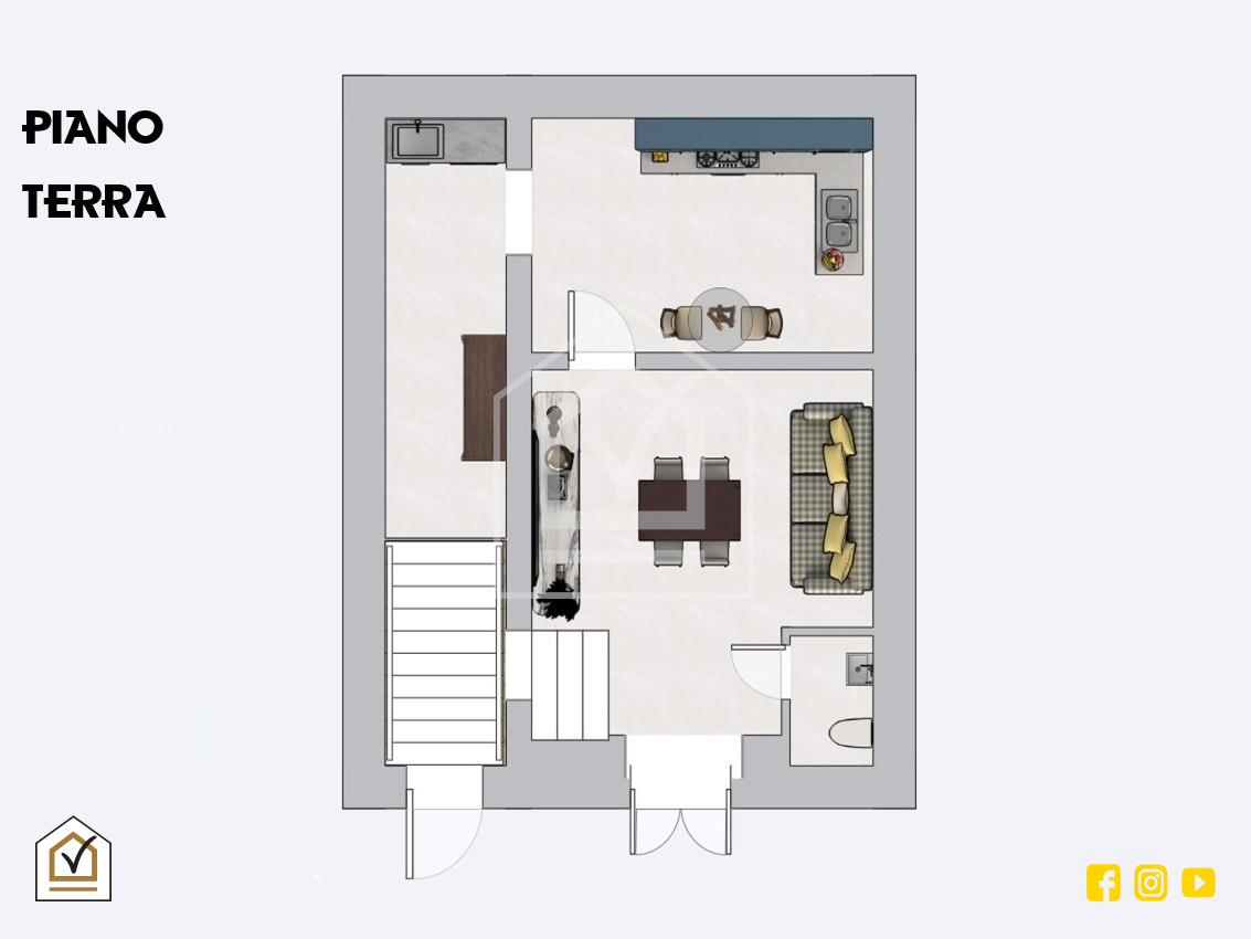 L’abitazione, di circa 120 mq, si distingue per la sua versatilità e funzionalità. Il primo ingresso conduce al piano terra, dove si sviluppa la zona giorno, attualmente organizzata in due ambienti distinti, ideali sia per realizzare un accogliente open space sia per mantenere la separazione tra salone e cucina. Completa il piano un bagno e una comoda area da destinare a lavanderia o cucinino.