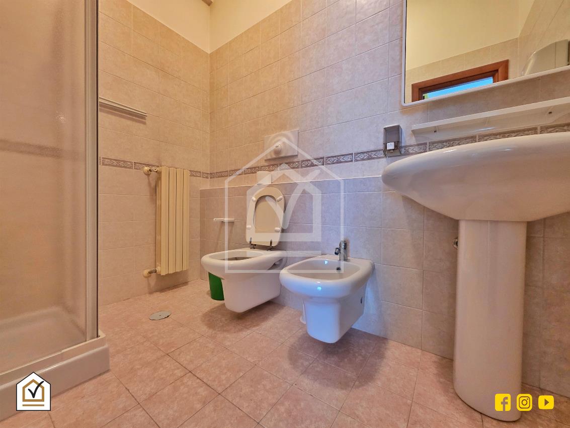 L’immobile dispone inoltre di due servizi: uno principale, completo e rifinito con doccia, e un secondo bagno di servizio, dotato di antibagno con lavabo e vano separato per i sanitari, soluzione pratica e particolarmente funzionale nella vita quotidiana.